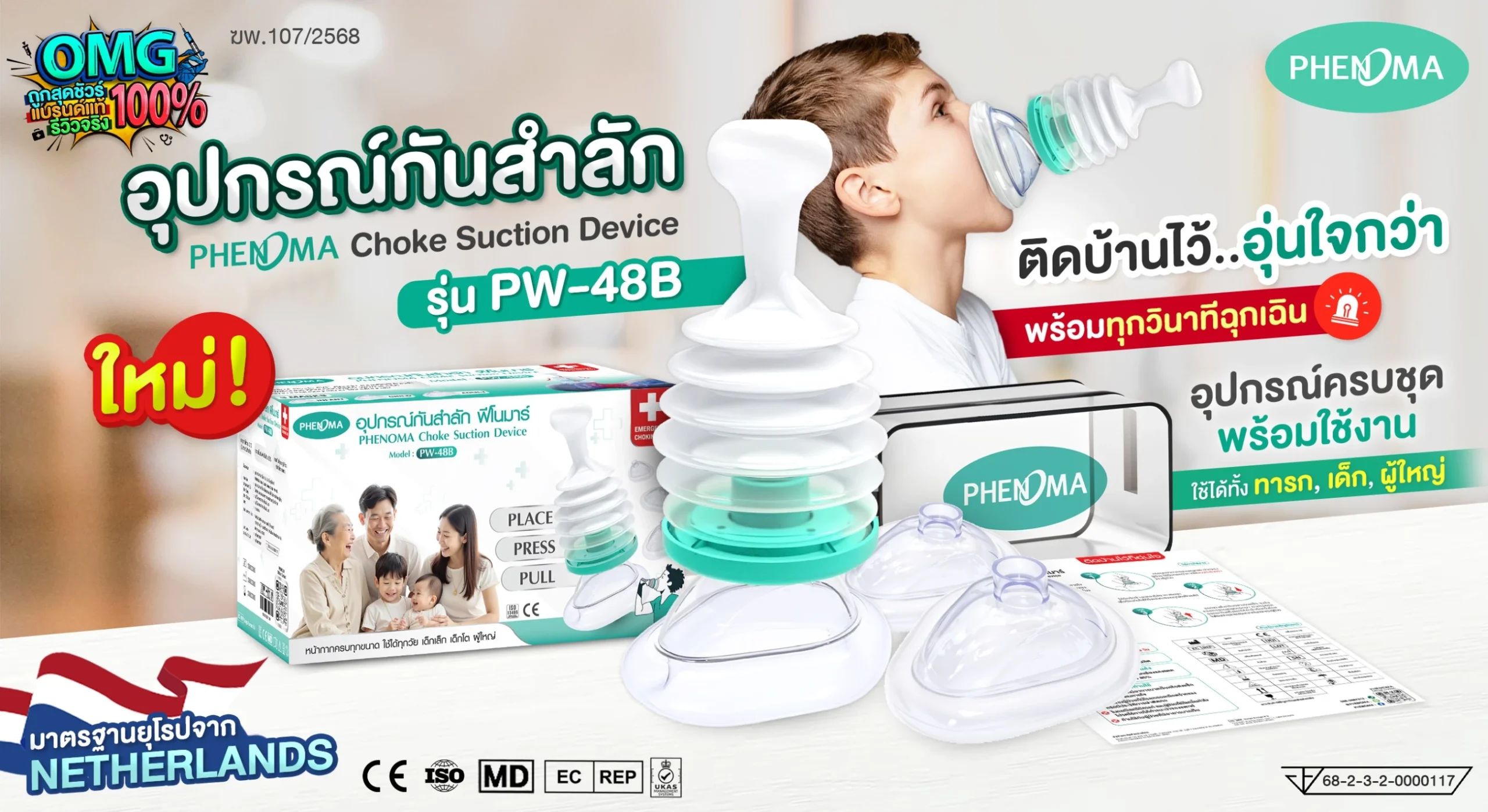 ✔ ไม่ต้องใช้แรงกดท้องแบบ Heimlich Maneuver