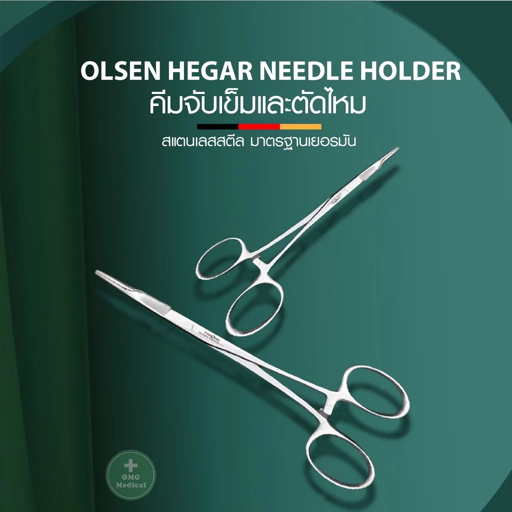 คุณสมบัติ: Olsen-Hegar เป็นคีมจับเข็มและมีกรรไกรสำหรับตัดไหมในตัว นอกจากนี้ยังมีตัวล็อก 3 ระดับ เพื่อช่วยป้องกันการเคลื่อนของเข็มในขณะเย็บแผล