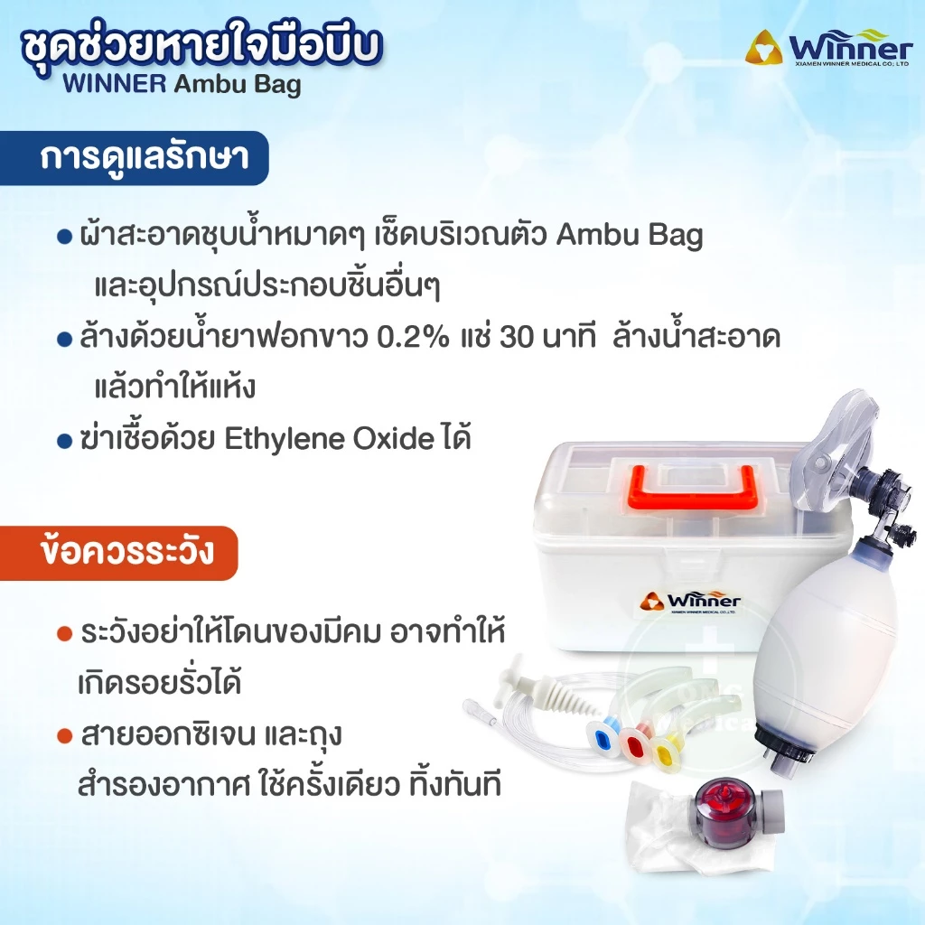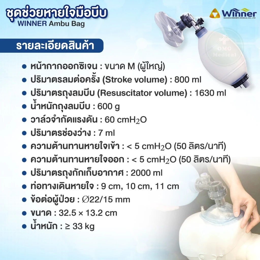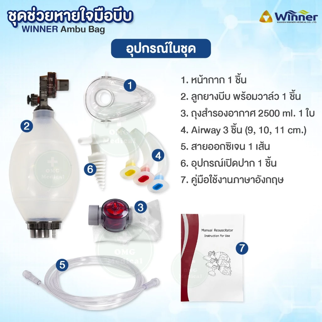 #AmbuBag #ชุดช่วยหายใจ #ชุดช่วยหายใจมือบีบ#ถุงลมบีบช่วยหายใจ #WINNER #อุปกรณ์การแพทย์ #อุปกรณ์CPR #อุปกรณ์กู้ชีพ #ชุดช่วยหายใจผู้ใหญ่ #EmergencyMedical #omgmedical