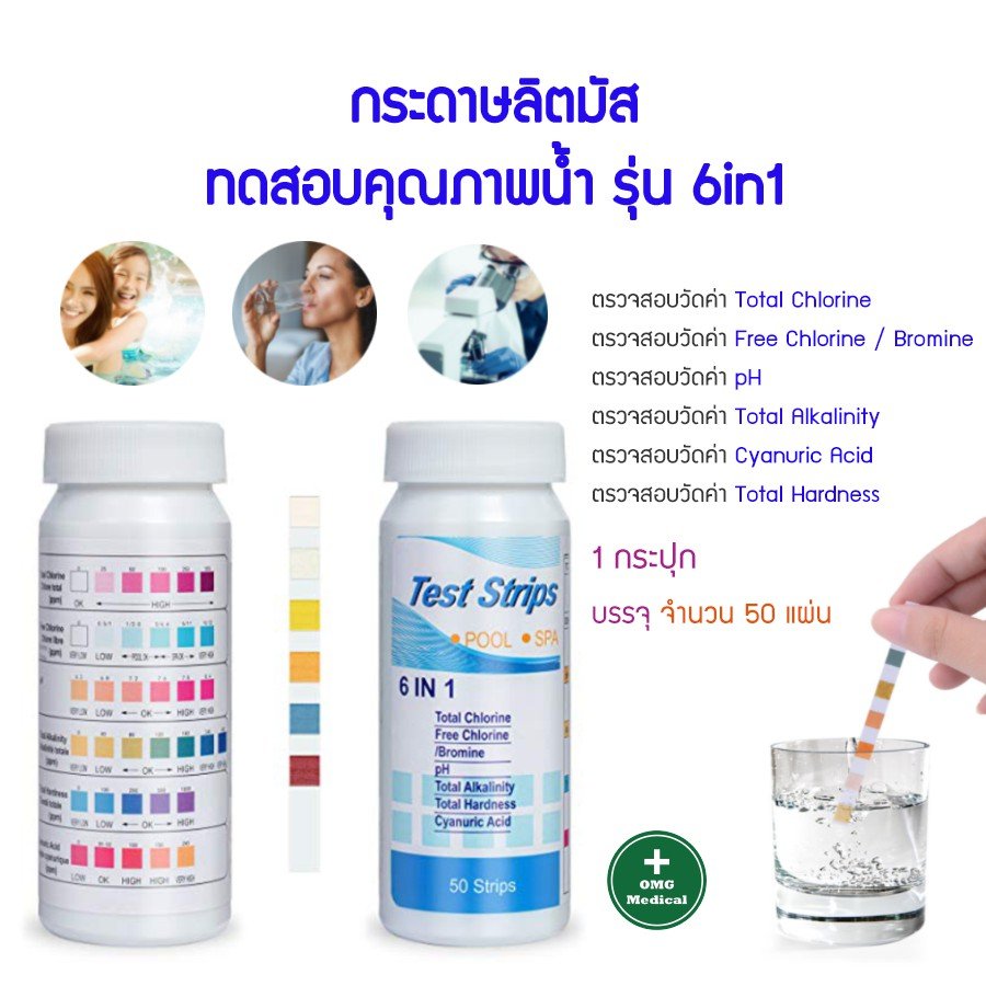 สี: สีของภาพวัสดุ: กระดาษ 6-in-1 กระดาษทดสอบสระว่ายน้ำค่า pH ของคลอรีนตกค้างแถบทดสอบความแข็งของอัลคาลินิตี้