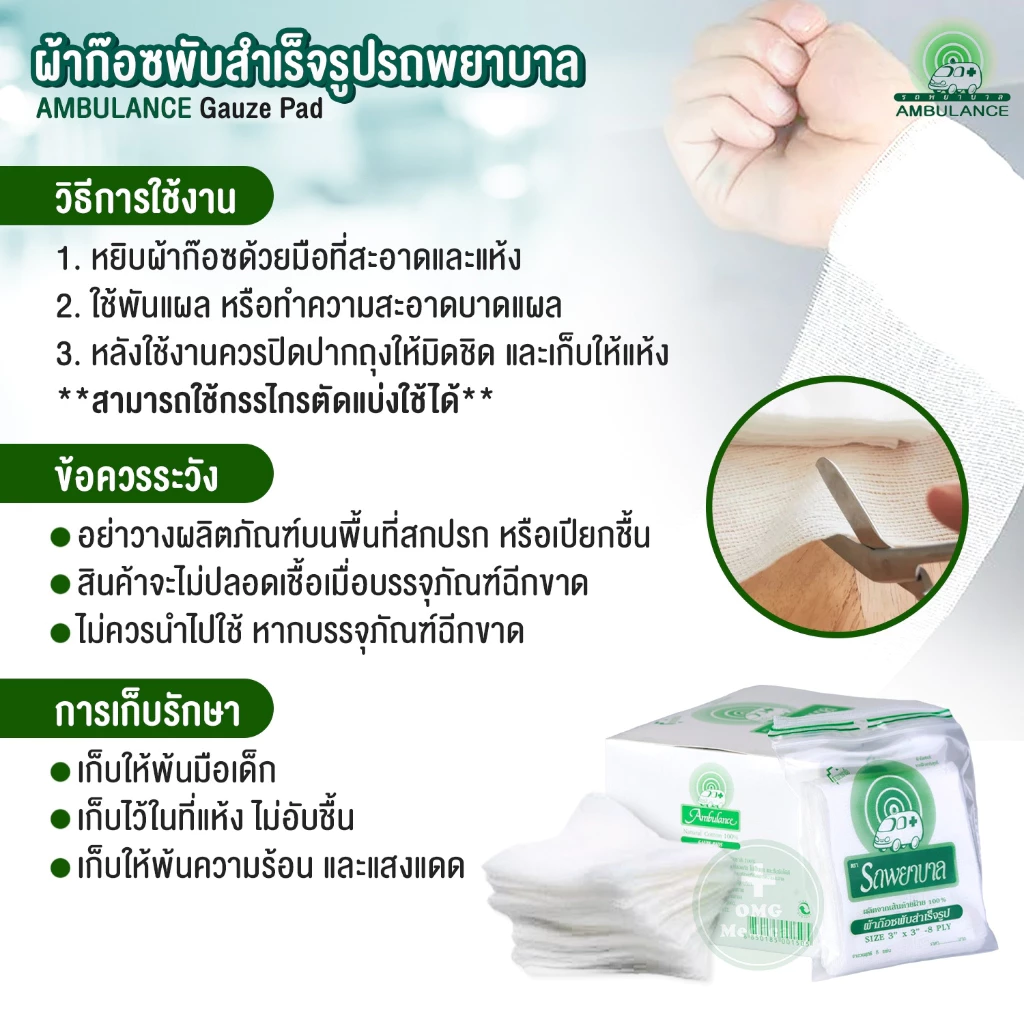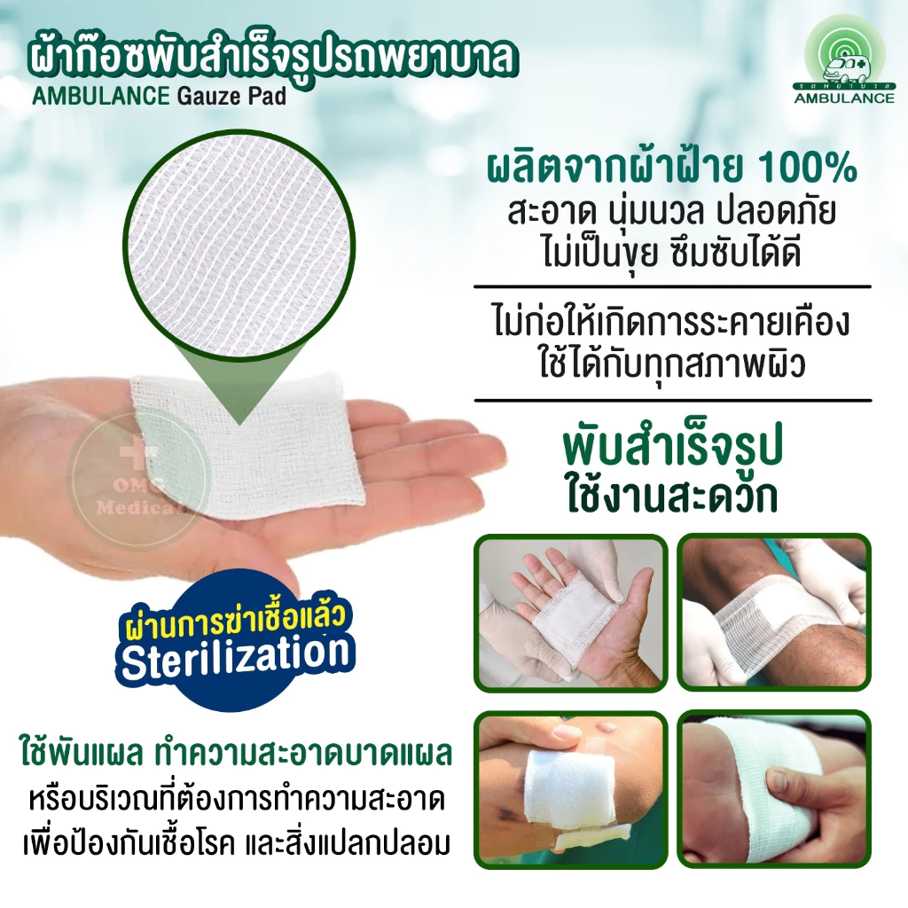 #ผ้าก๊อซแผ่น #ผ้าก๊อซรถพยาบาล #gauze #ผ้าปิดแผล #แต่งแผล #ผ้าก๊อซ #ผ้าก๊อสพับ #cotton100% #ปลอดเชื้อ #ทำแผล #GauzePads #รถพยาบาล #Ambulance #AmbulanceGauzePads #omgmedical #อุปกรณ์ทางการแพทย์