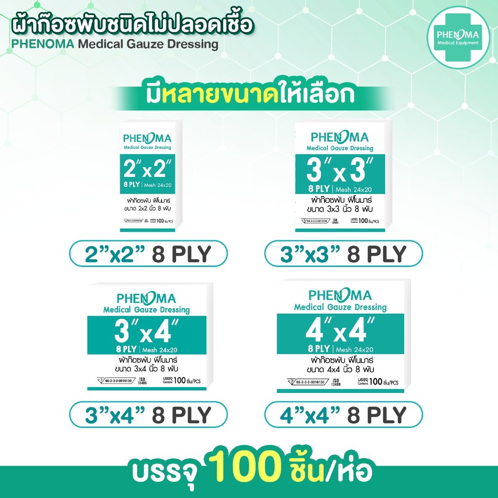 ผ้าก๊อซพับฟีโนมาร์ ชนิดไม่ปลอดเชื้อ ผลิตจากฝ้ายแท้ Natural Cotton 100%