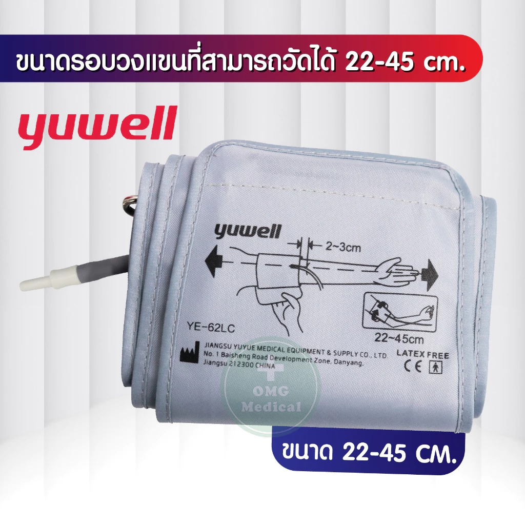 ใช้กับผู้ใหญ่มี 2 ขนาด รอบแขน 22-32 ซม. และขนาด รอบแขน 22-45 ซม.