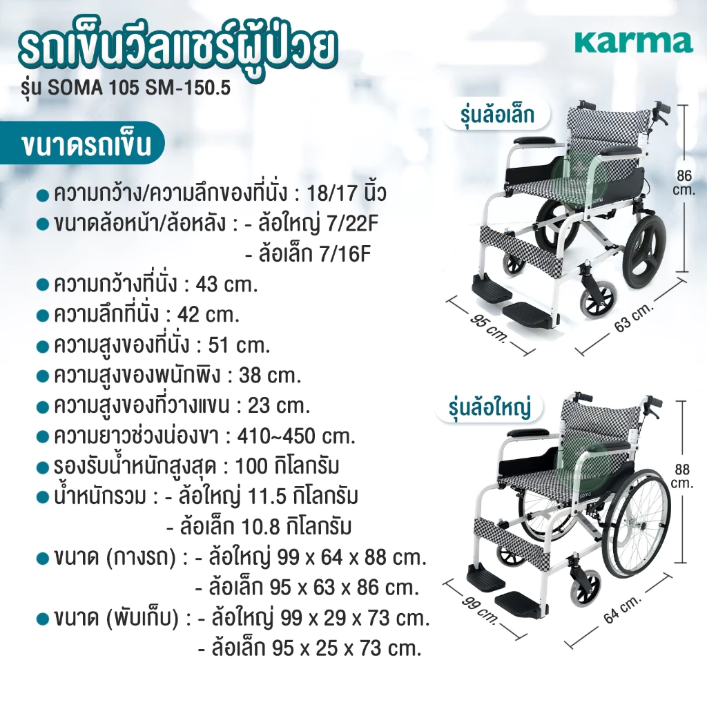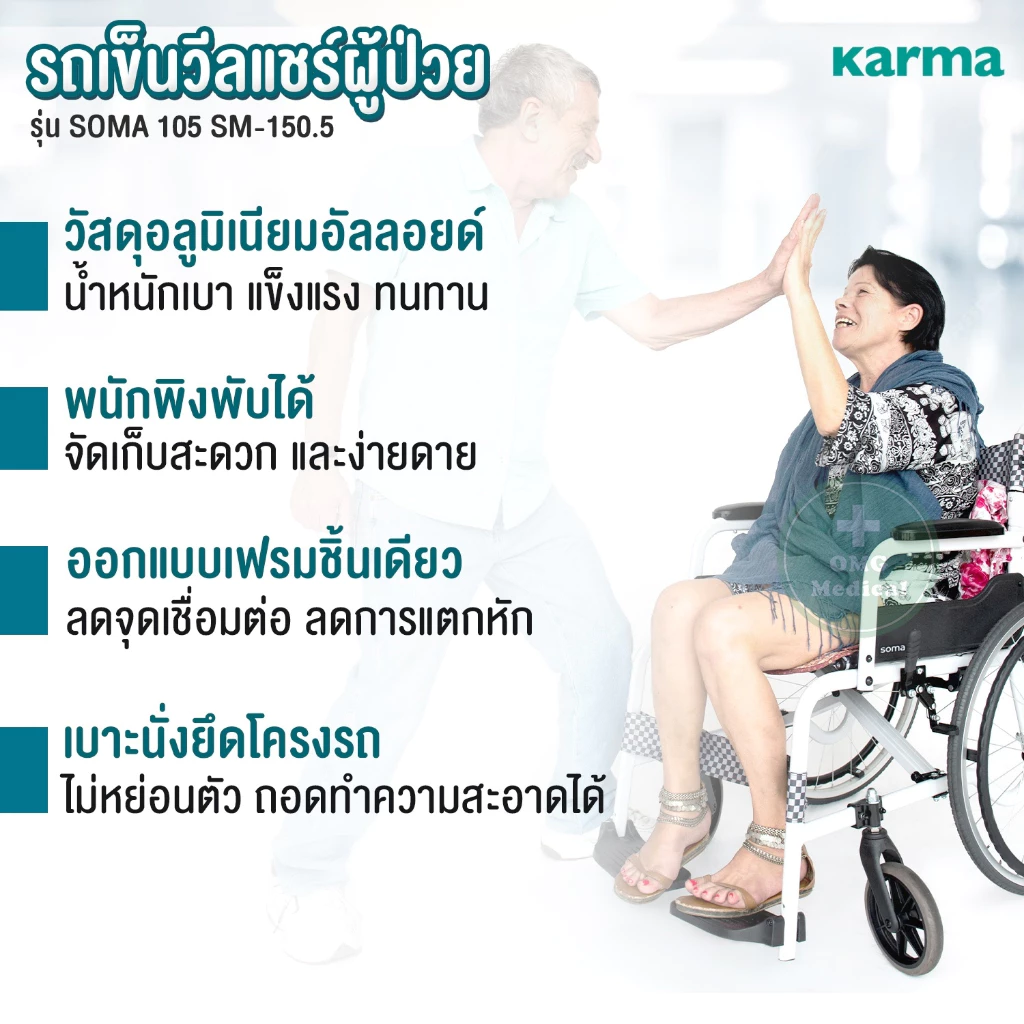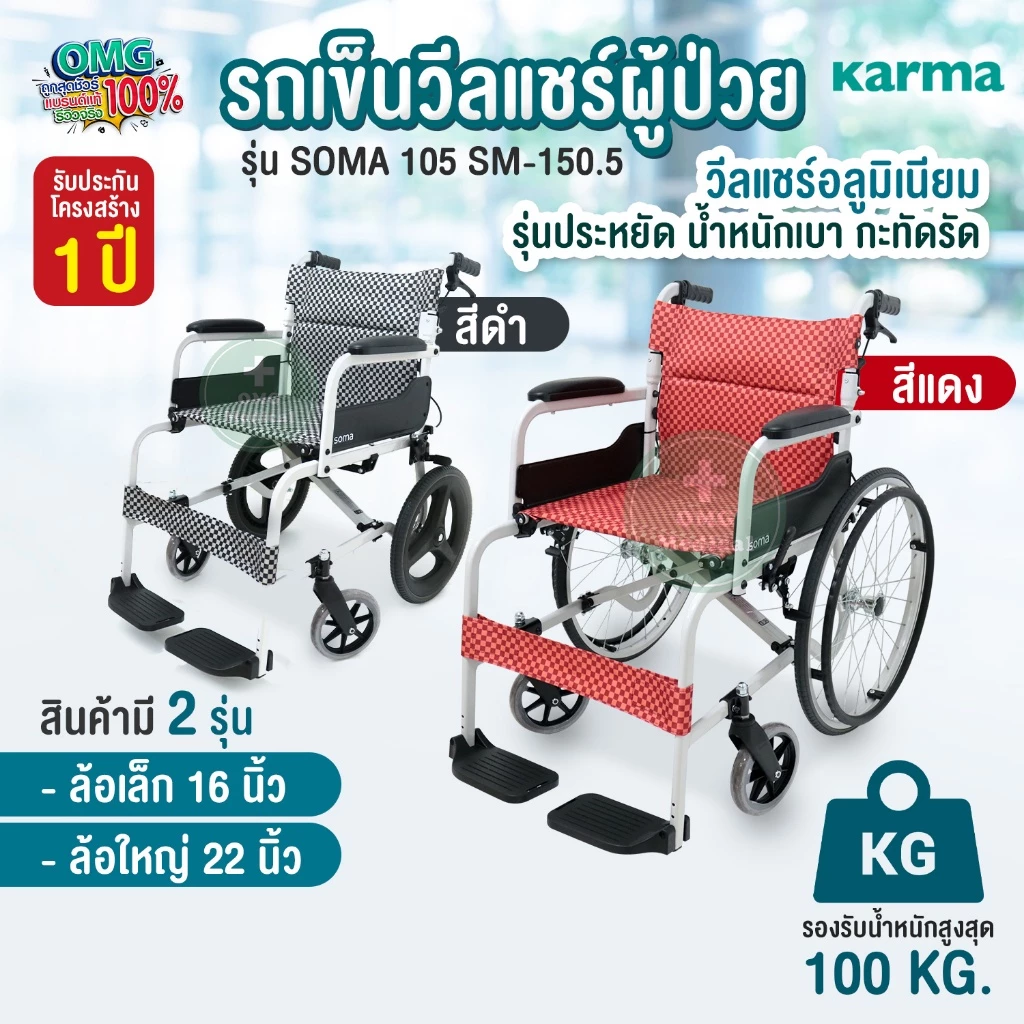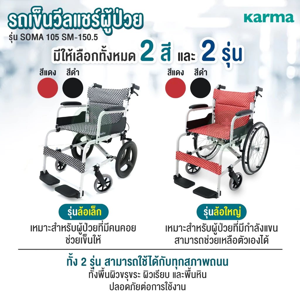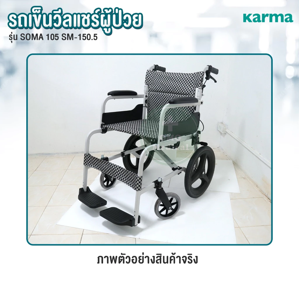 รถเข็นผู้ป่วย Karma คาร์ม่า รถเข็นผู้ป่วย รุ่น SOMA 105 SM-150.5 วีลแชร์ ผู้สูงอายุ อลูมิเนียม พับได้ (ล้อเล็ก/ล้อใหญ่)