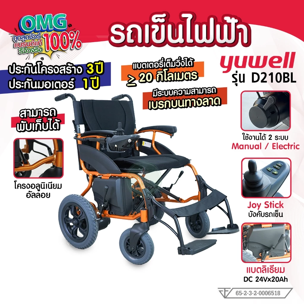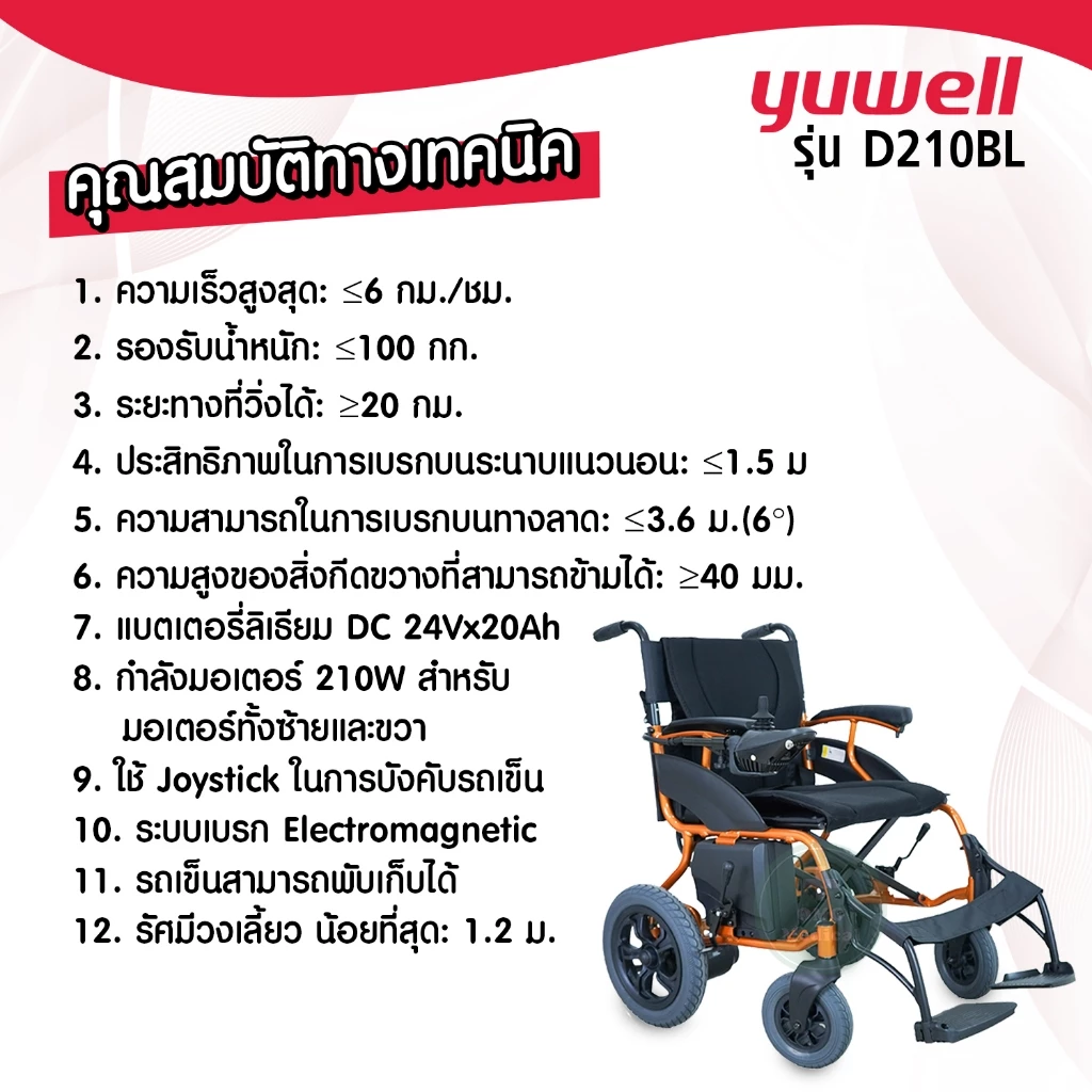 🦽 รถเข็นไฟฟ้า Yuwell รุ่น D210BL Wheelchair electric 🦽