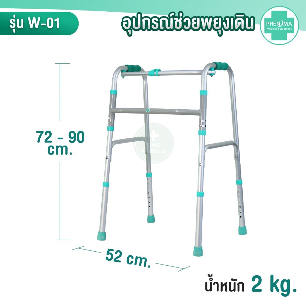 อุปกรณ์ช่วยพยุงเดิน วอล์คเกอร์ Walker 4 ขา เหมาะสำหรับ ผู้ป่วย หรือ ผู้สูงอายุที่มีปัญหาในการเดิน เช่น หัวเข่าอักเสบ ข้อเท้าแพลง หรือผู้ป่วยที่ประสบอุบัติเหตุ วัสดุทำจากอลูมิเนียม มี 4 ขา สามารถโน้มน้ำหนักตัวลงไปที่อุปกรณ์ได้ในขณะกำลังเดิน หรือ กายภาพบำบัด ใช้งานง่าย น้ำหนักเบา