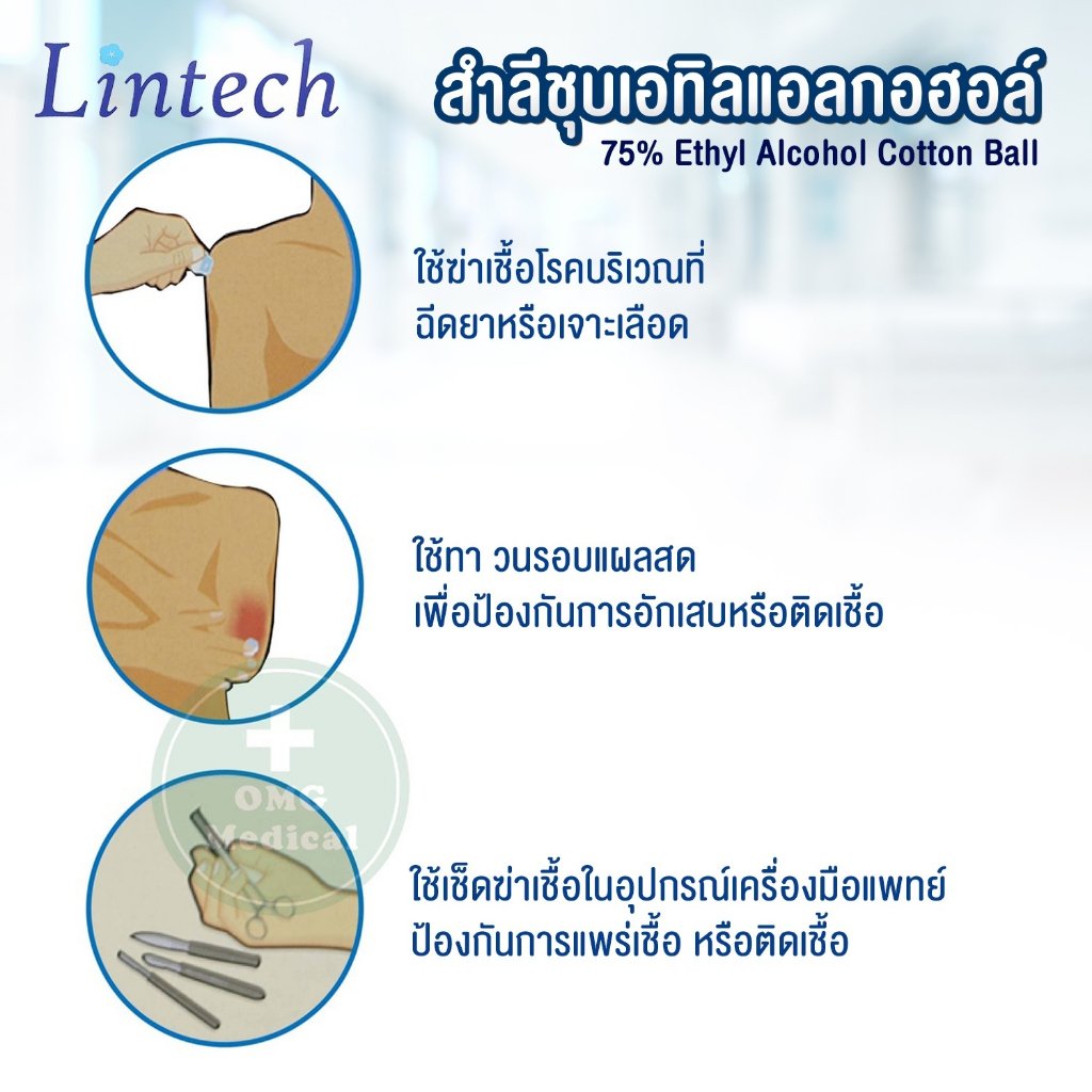 ใช้เช็ดเพื่อฆ่าเชื้อโรคบริเวณที่ฉีดยาหรือเจาะเลือด ใช้ทาวนรอบแผลสดเพื่อป้องกันการอักเสบหรือติดเชื้อ และใช้เช็ดฆ่าเชื้อในอุปกรณ์เครื่องมือแพทย์ป้องกันการแพร่เชื้อหรือติดเชื้อ