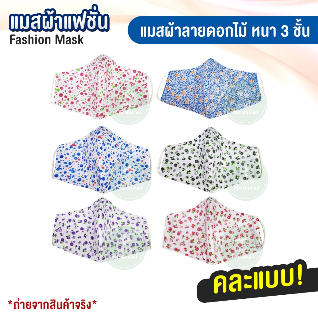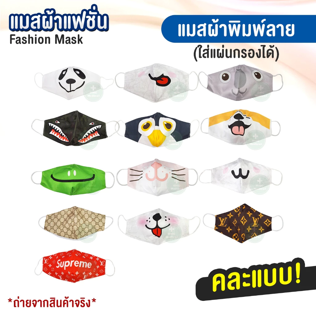 หน้ากากผ้า แมสผ้าแฟชั่น คละแบบ ลายเยอะมาก!! 😷 (แพ็ค 1 ชิ้น) **สุ่มคละลาย**