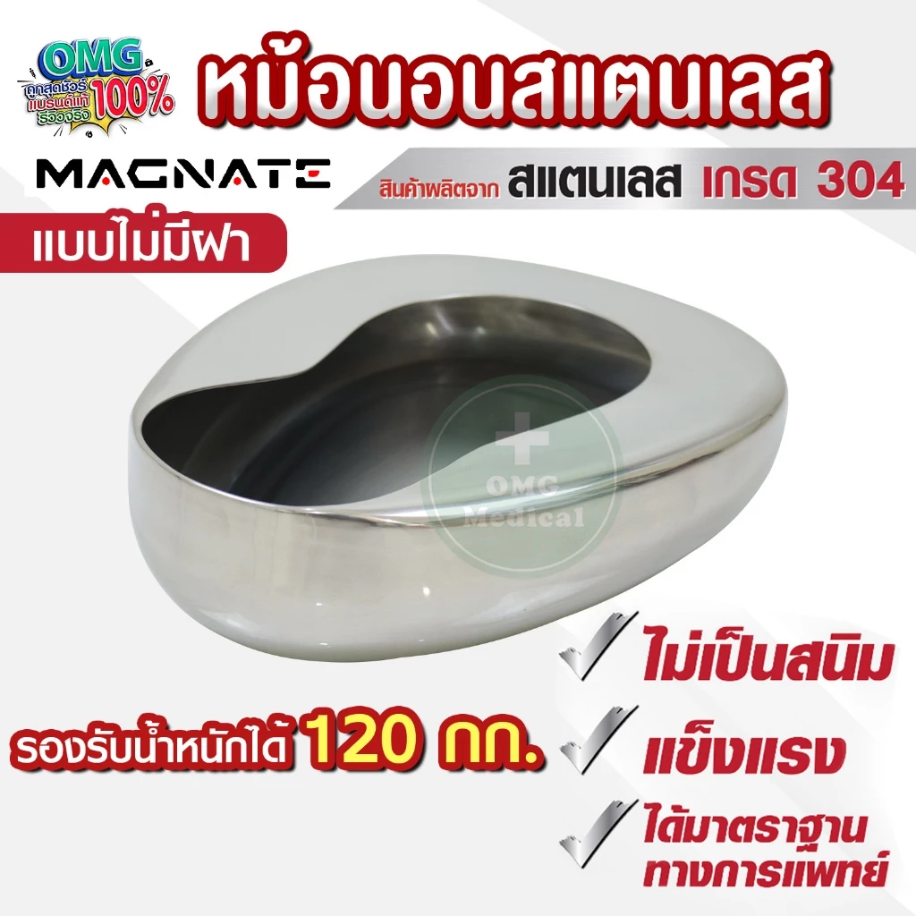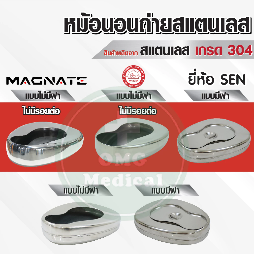 หม้อนอนถ่าย หม้อนอนสแตนเลส ADULT BEDPAN ยี่ห้อ Magnate Sphinx Sen โถอุจจาระ ปัสสาวะ แข็งแรง ทนทาน