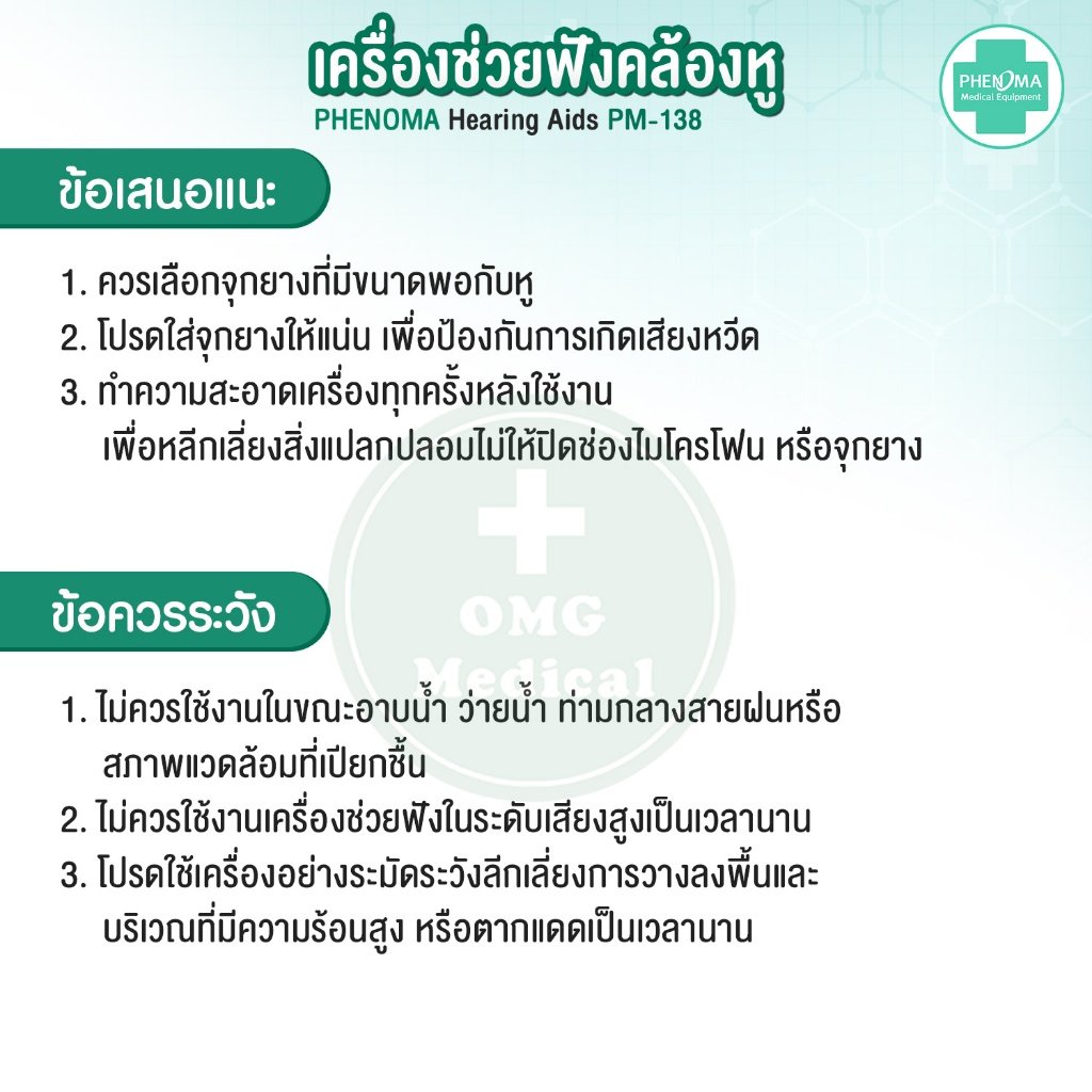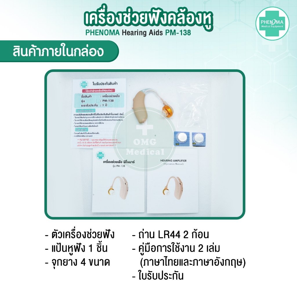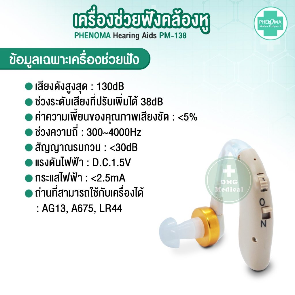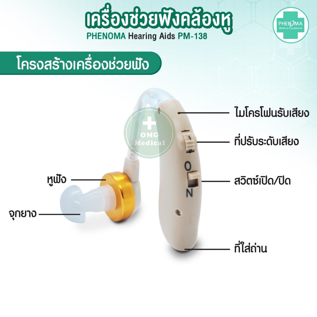 🎧 เครื่องช่วยฟัง รุ่น PM-138 แบบคล้องหู ยี่ห้อ Phenoma 🎧