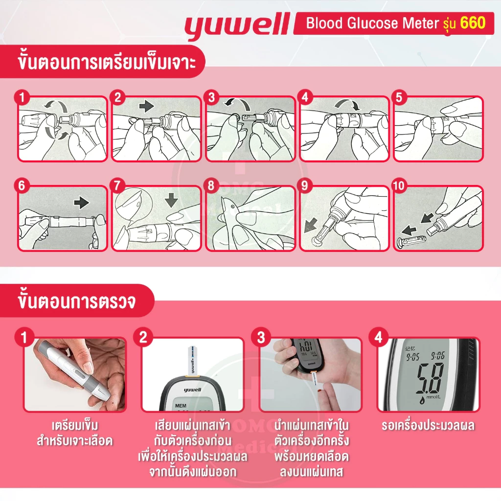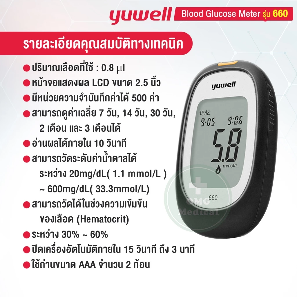 – ใช้กับเครื่องวัดระดับน้ำตาลในเลือด Yuwell รุ่น 660