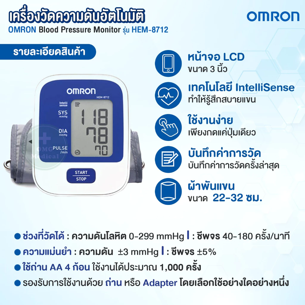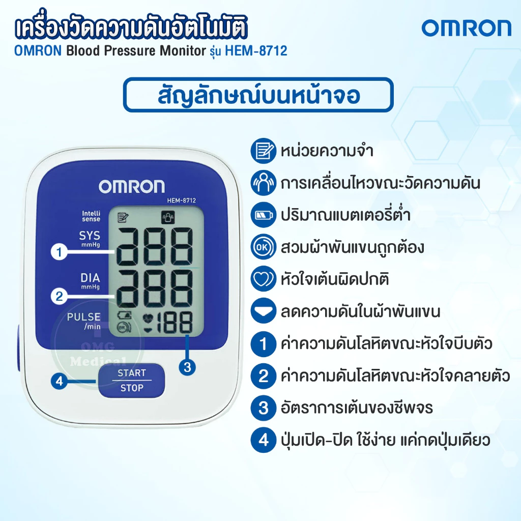 #OMRON #HEM-8712 #8712 #เครื่องวัดความดัน #เครื่องวัดความดันโลหิต #ความดัน #BloodPressureMonitor #เครื่องวัดความดันอัตโนมัติ #omgmedical #อุปกรณ์การแพทย์ #เครื่องมือแพทย์
