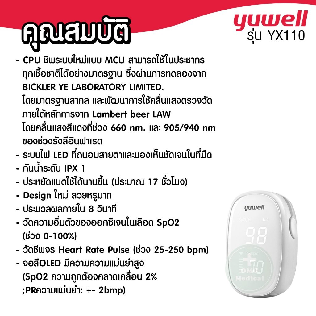✨ ยี่ห้อ YUWELL รุ่น YX110 (Bluetooth) ✨