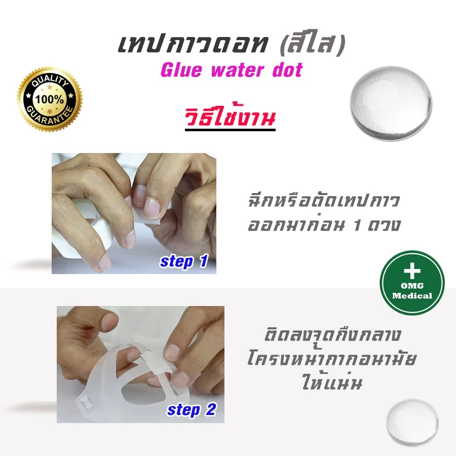 เทปกาวดอท (สีใส) Glue water dot ติดหน้ากากอนามัย