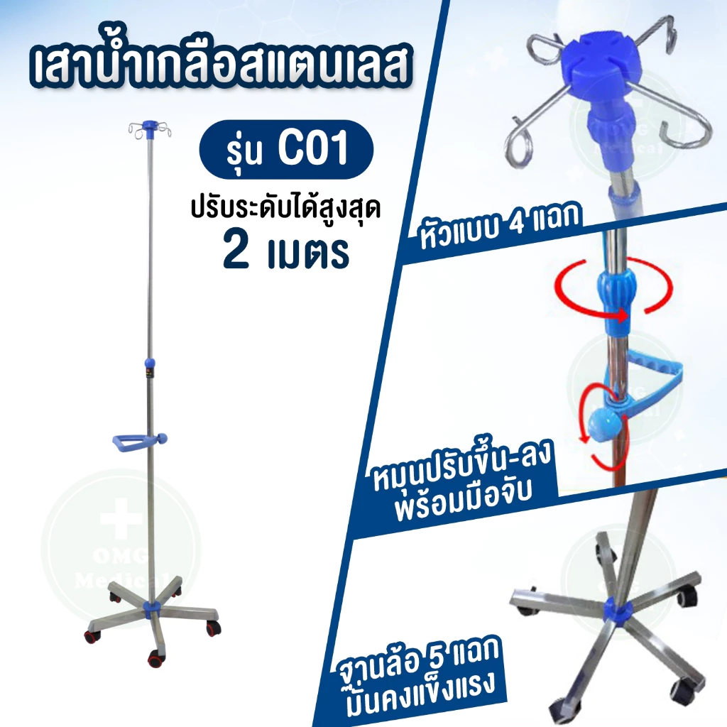 เสาน้ำเกลือ Stainless เสาน้ำเกลือแสตนเลส เกรดโรงพยาบาล อย่างดี แสตนเลสแท้ ข้อต่อ วัสดุ ABS คุณภาพสูง