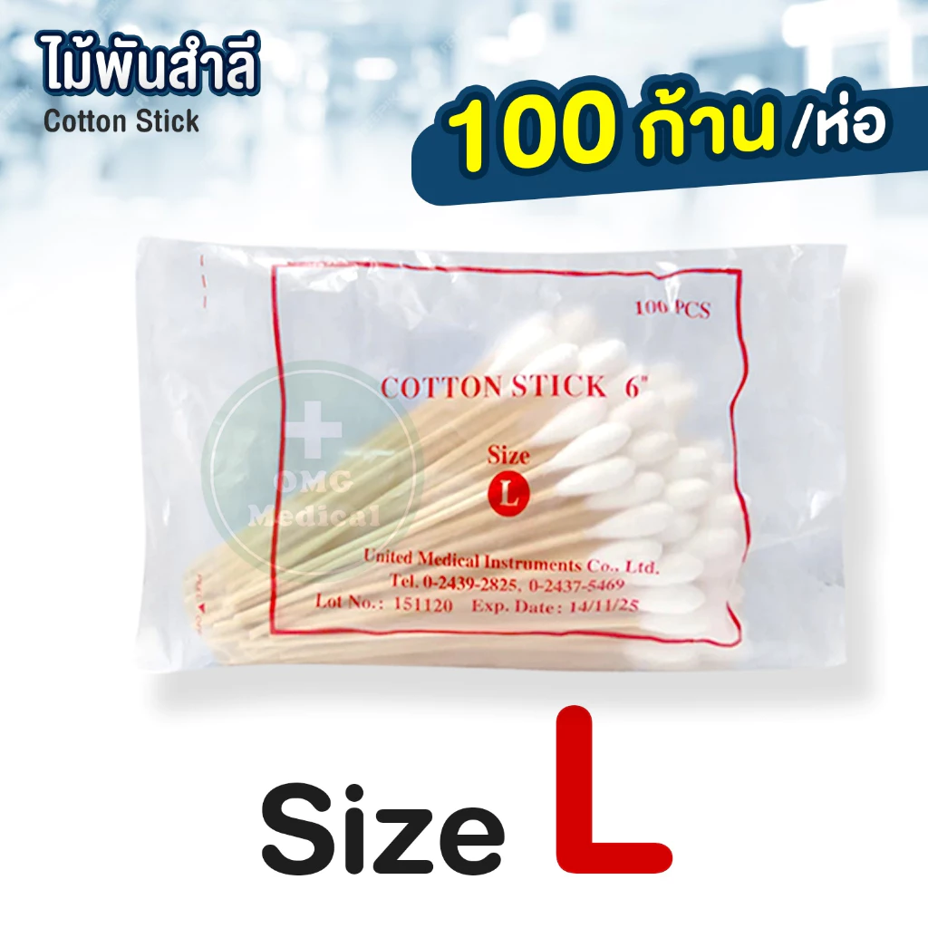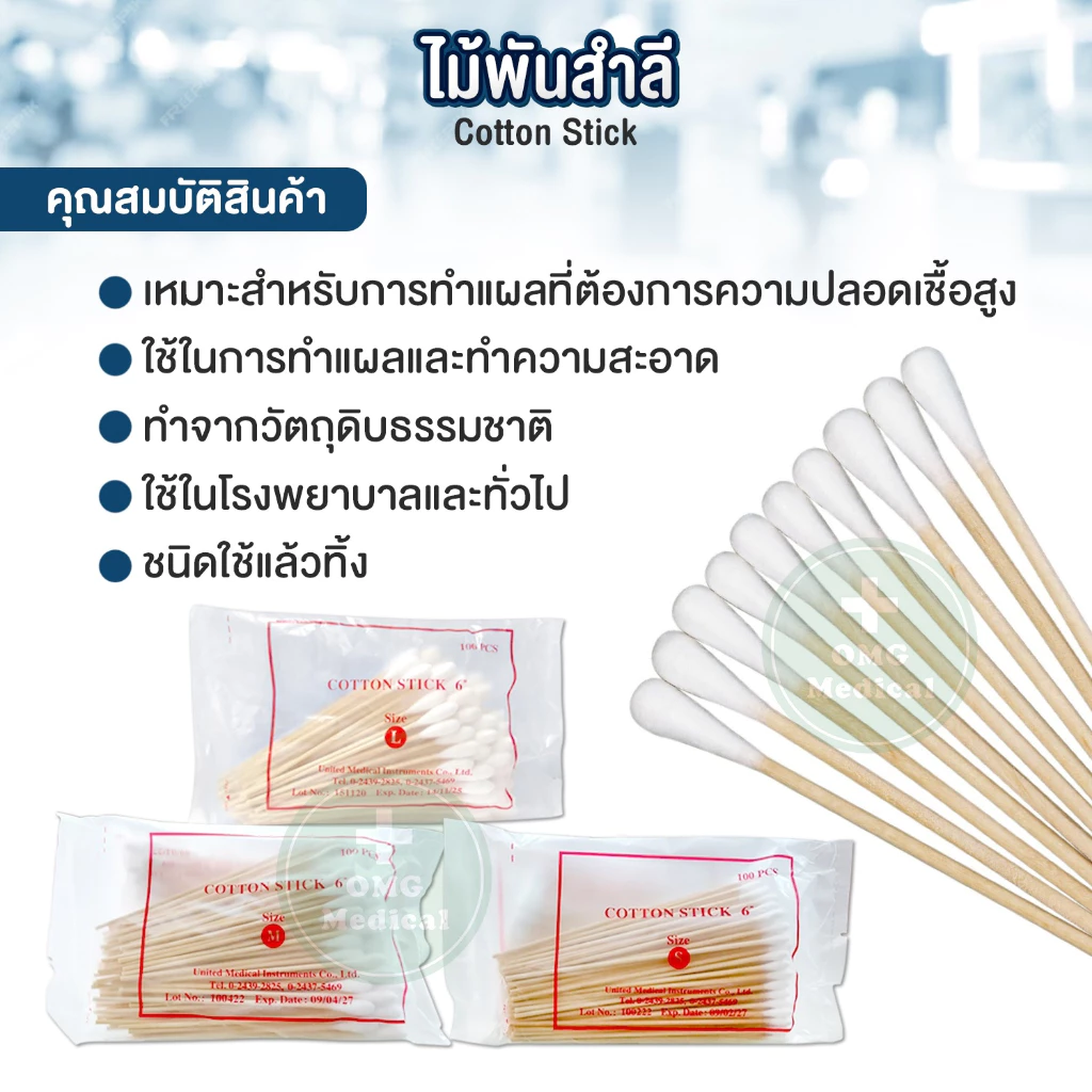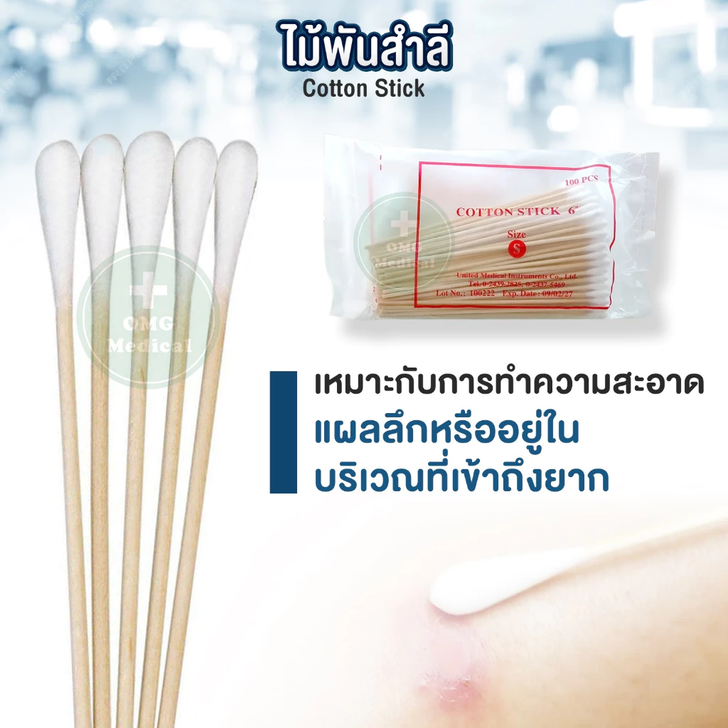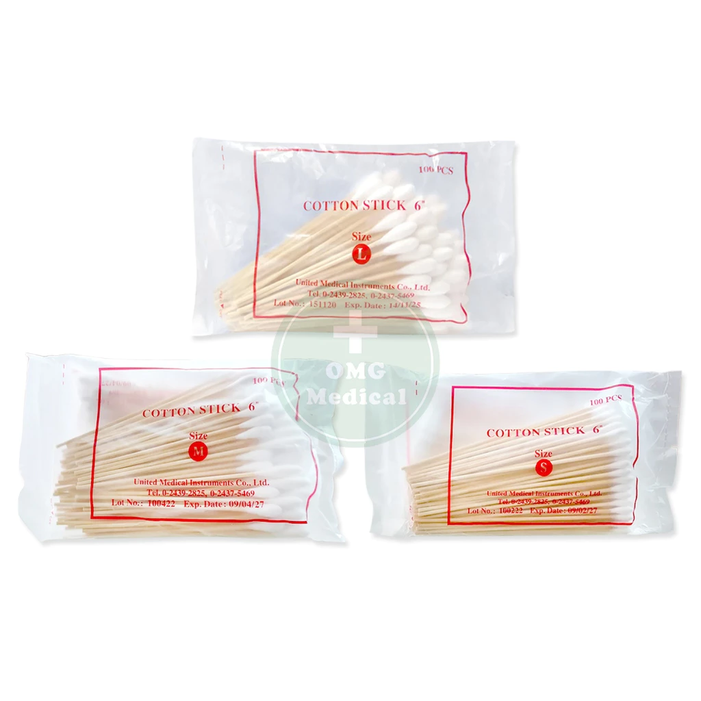 ไม้พันสำลี Cotton Stick สำลีก้าน สำหรับเช็ดทำความสะอาดแผล เกรดคุณภาพ มาตรฐานทางการแพทย์ จากบริษัท United Medical