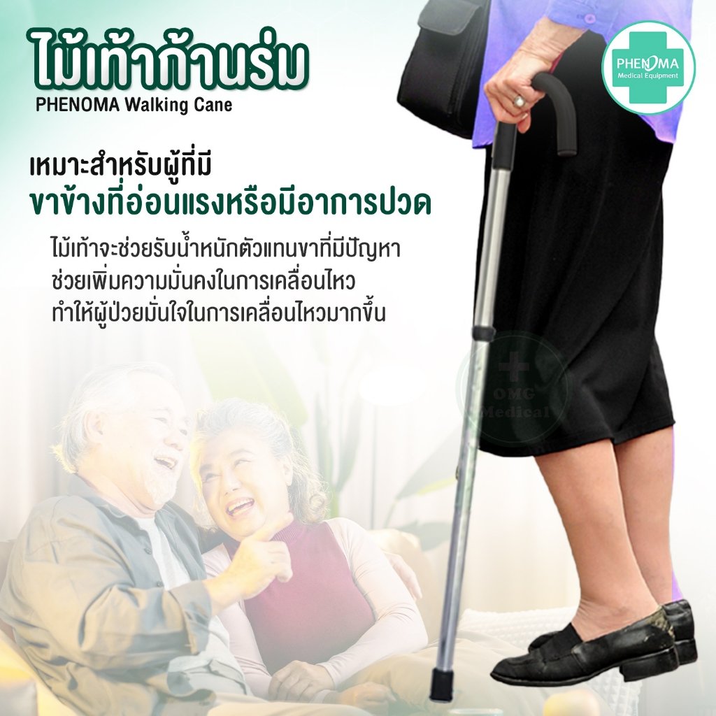 – เหมาะสำหรับผู้ที่มีขาข้างที่อ่อนแรงหรือมีอาการปวด ไม้เท้าจะช่วยรับน้ำหนักตัวแทน ขาที่มีปัญหา