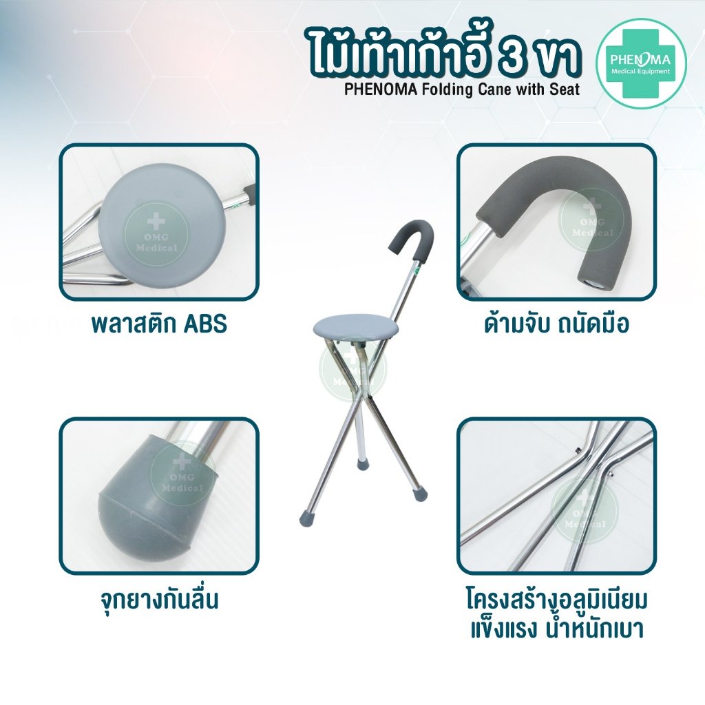#ไม้เท้าเก้าอี้2ln1 #อะลูมิเนียม #เก้าอี้ไม้เท้า3ขา #พับได้ #ไม้เท้านั่งพัก #ไม้เท้าคนแก่ #ไม้เท้าช่วยเดิน #ไม้เท้านั่งได้ #phenoma #omgmedical #อุปกรณ์ทางการแพทย์