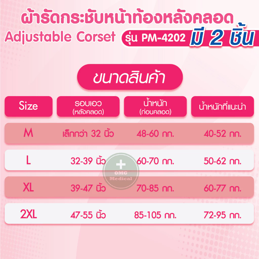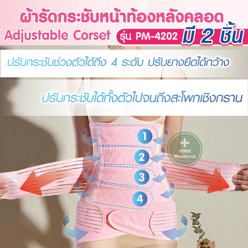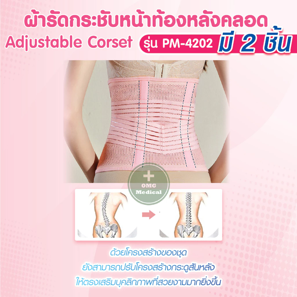ผ้ารัดกระชับหน้าท้องหลังคลอด Adjustable Corset PM 4202 4201 กระชับหน้าท้อง บรรเทาอาการปวดหลัง กระชับ 3 เท่า