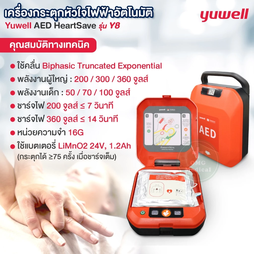 เครื่องกระตุกหัวใจไฟฟ้า ชนิดกึ่งอัตโนมัติ YUWELL AED HeartSave รุ่น Y8