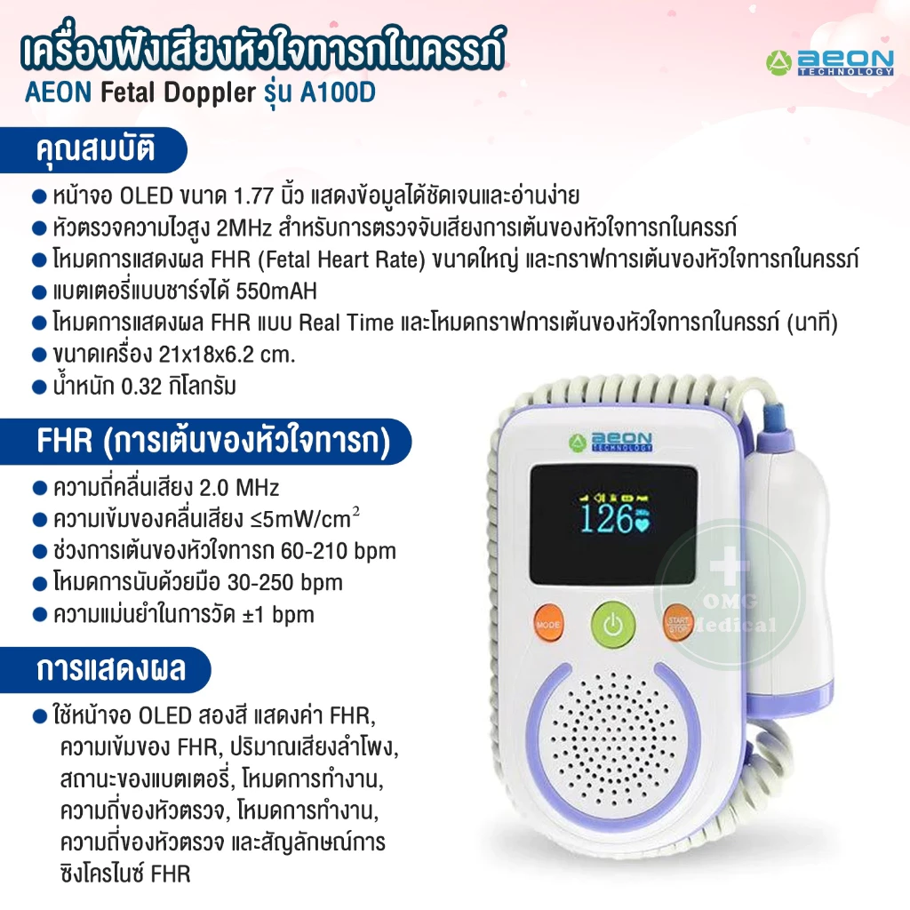 เครื่องฟังเสียงหัวใจทารกในครรภ์ AEON Fetal Doppler รุ่น A100D