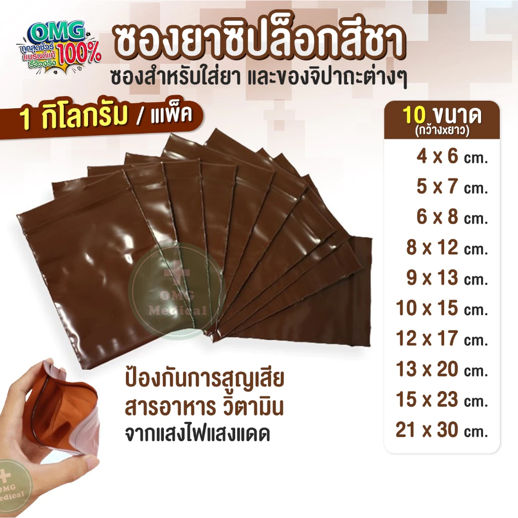 ซองยา ถุงยา ถุงซิปใส่ยา สีชา ขนาด 1 กิโลกรัม food grade