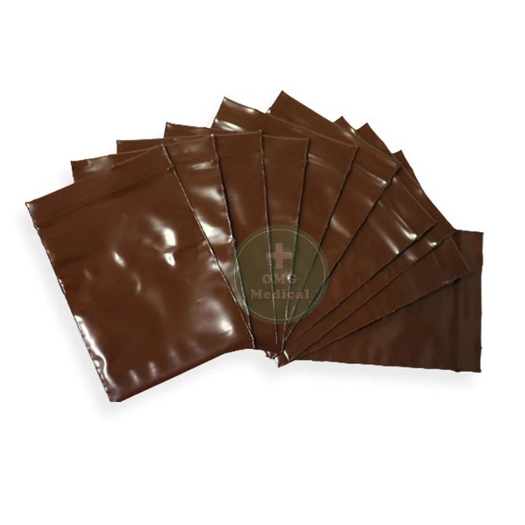 ผลิตจากพลาสติก Food Grade Amber Medication Bag : Low Density Poly Ethylene ความหนาไม่ต่ำกว่า 0.15 mm.
