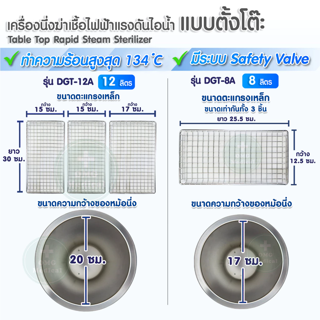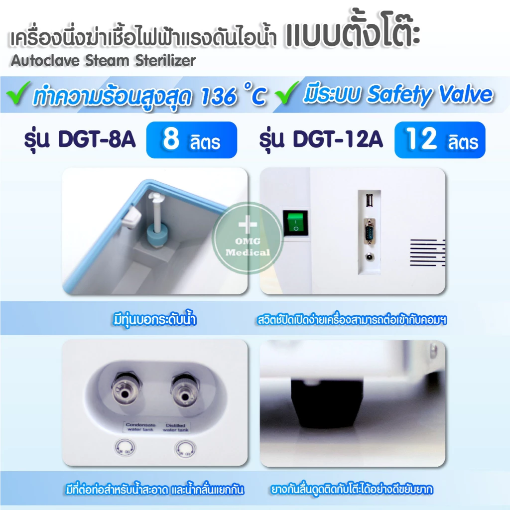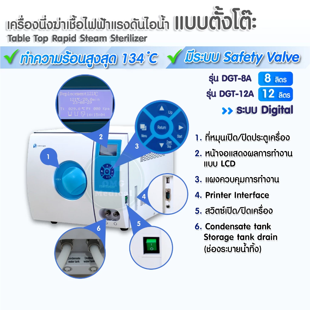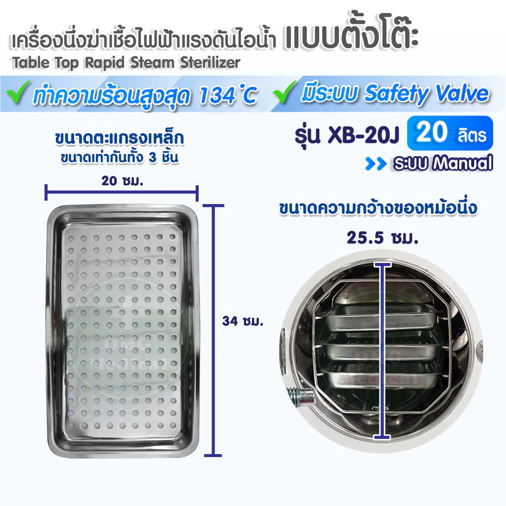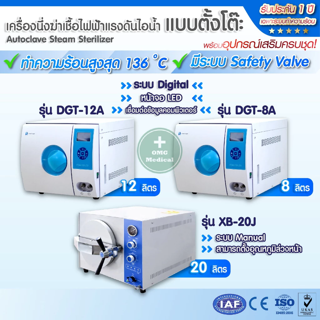 ⭐เครื่องนึ่งฆ่าเชื้อ ไฟฟ้าแรงดันไอน้ำ (แบบตั้งโต๊ะ) ขนาด 8,12,20 ลิตร Autoclave Steam Sterilizer มีประสิทธิภาพสูง⭐