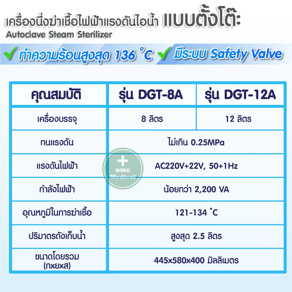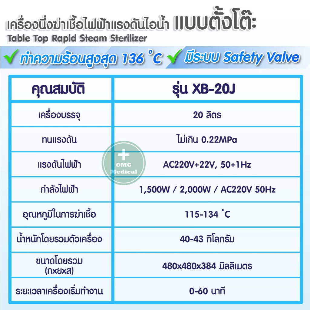 ✅อุณหภูมิในการฆ่าเชื้อ : 115/134 ℃