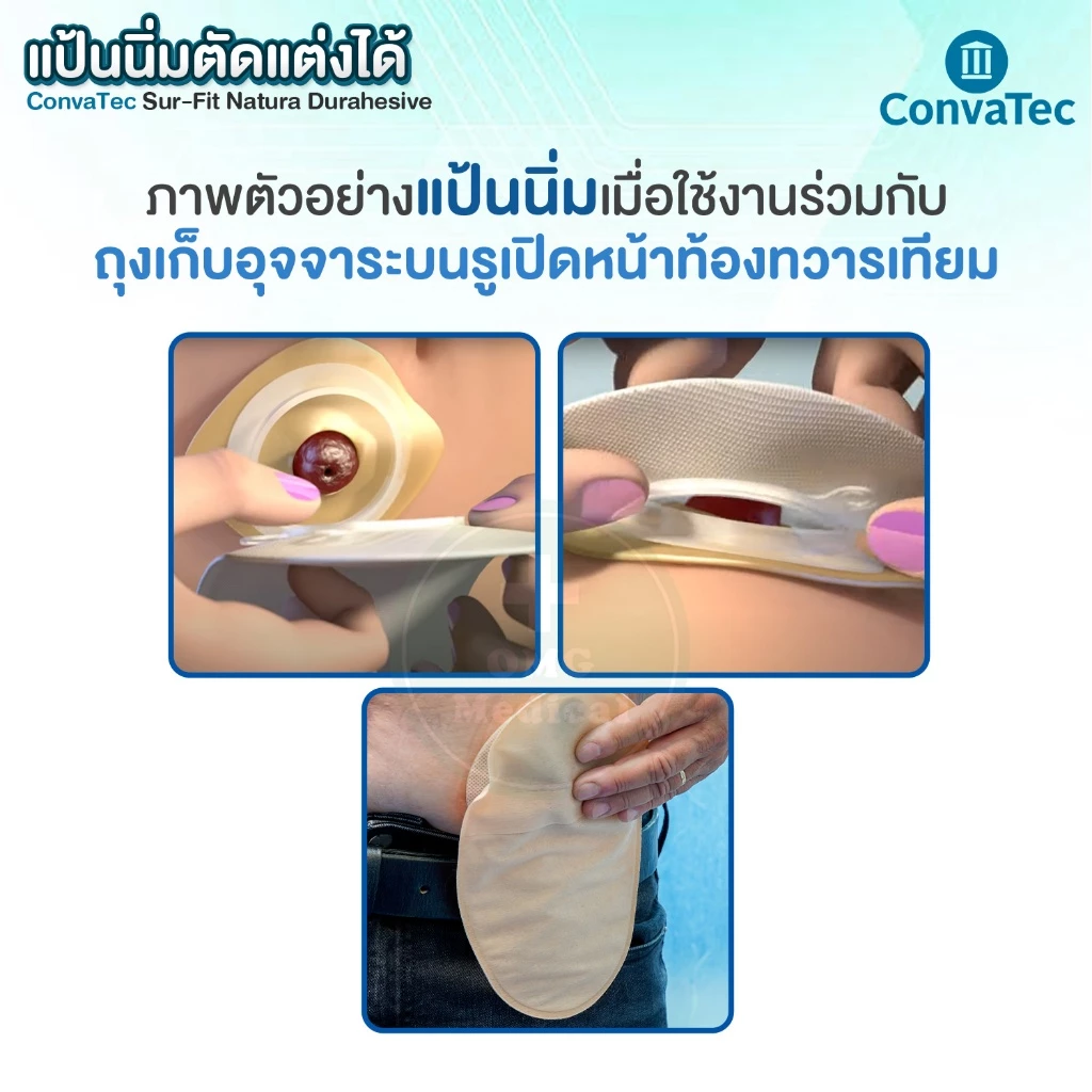 แป้นนิ่มตัดแต่งได้ Convatec Sur-Fit Natura Durahesive ใช้สำหรับผู้ป่วยเจาะทวารเทียม ติดถุงอุจจาระ ติดถุงปัสสาวะ