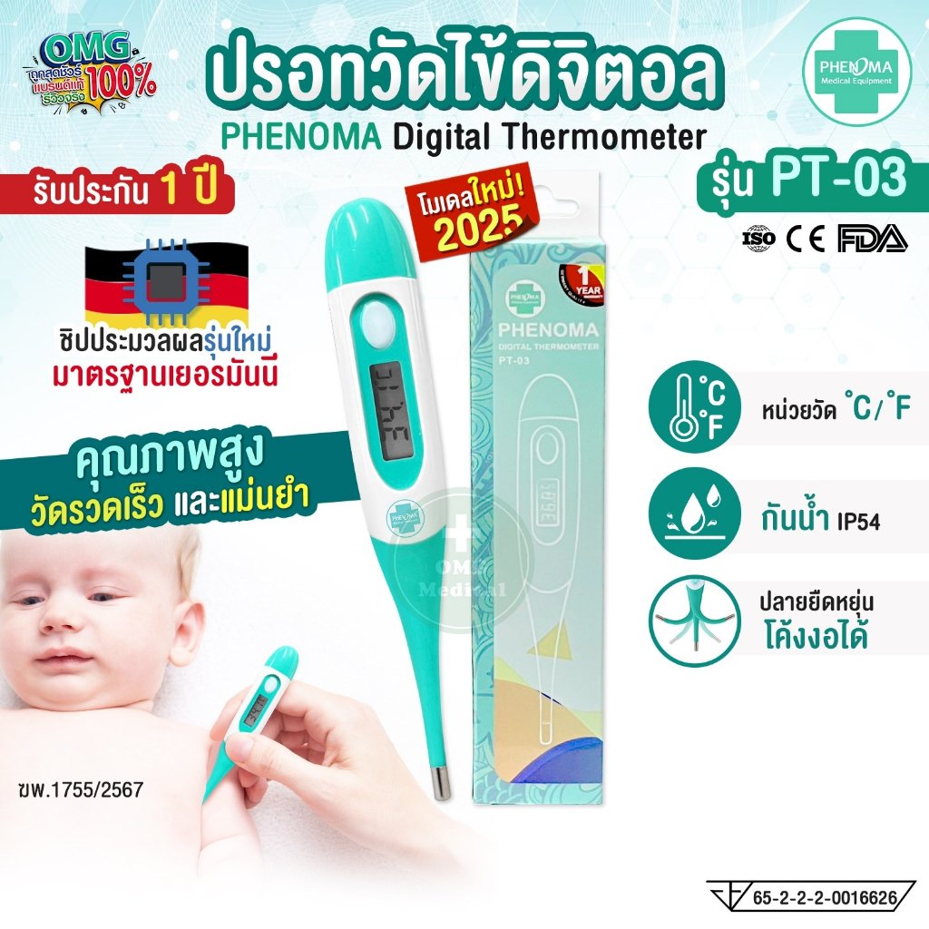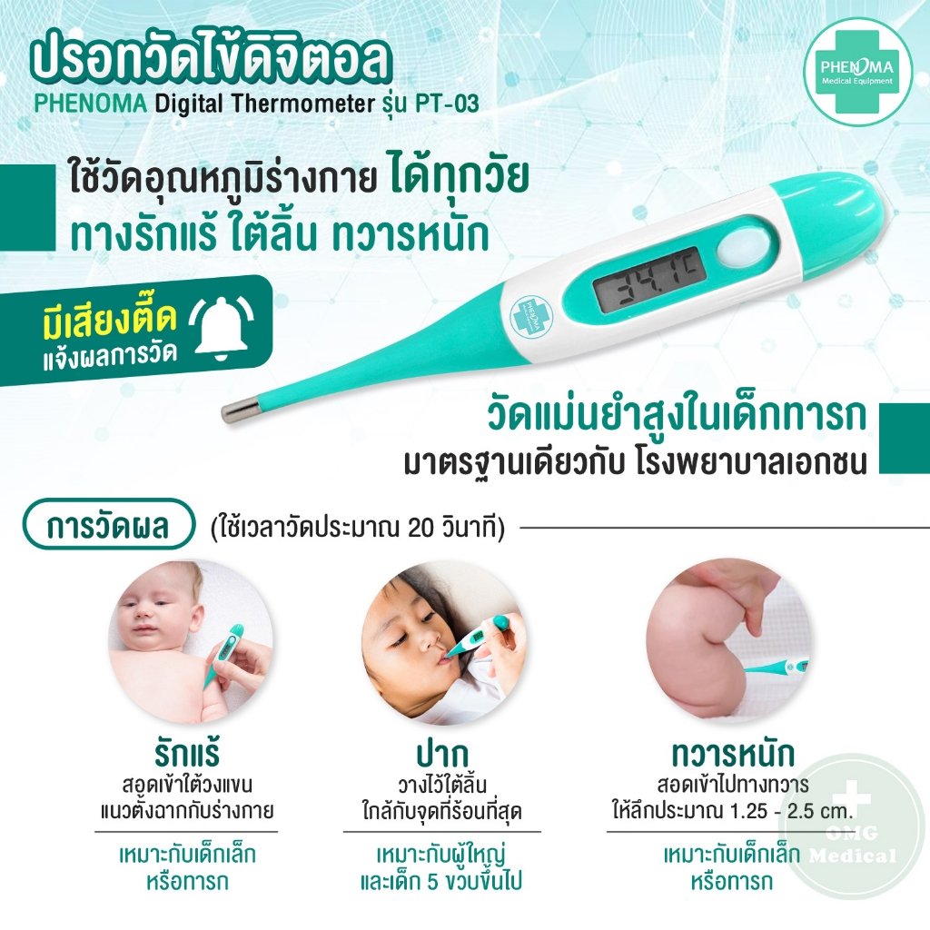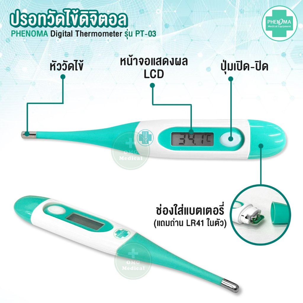 #ปรอทวัดไข้ #Thermomether #DigitalThermomether #ปรอทดิจิตอล #ปรอทดิจิตอลปลายยืดหยุ่น #ปรอทดิจิตอลวัดไข้ #ปรอทวัดไข้เด็ก #ปรอทวัดไข้ผู้ใหญ่ #PHENOMA #omgmedical #อุปกรณ์ทางการแพทย์