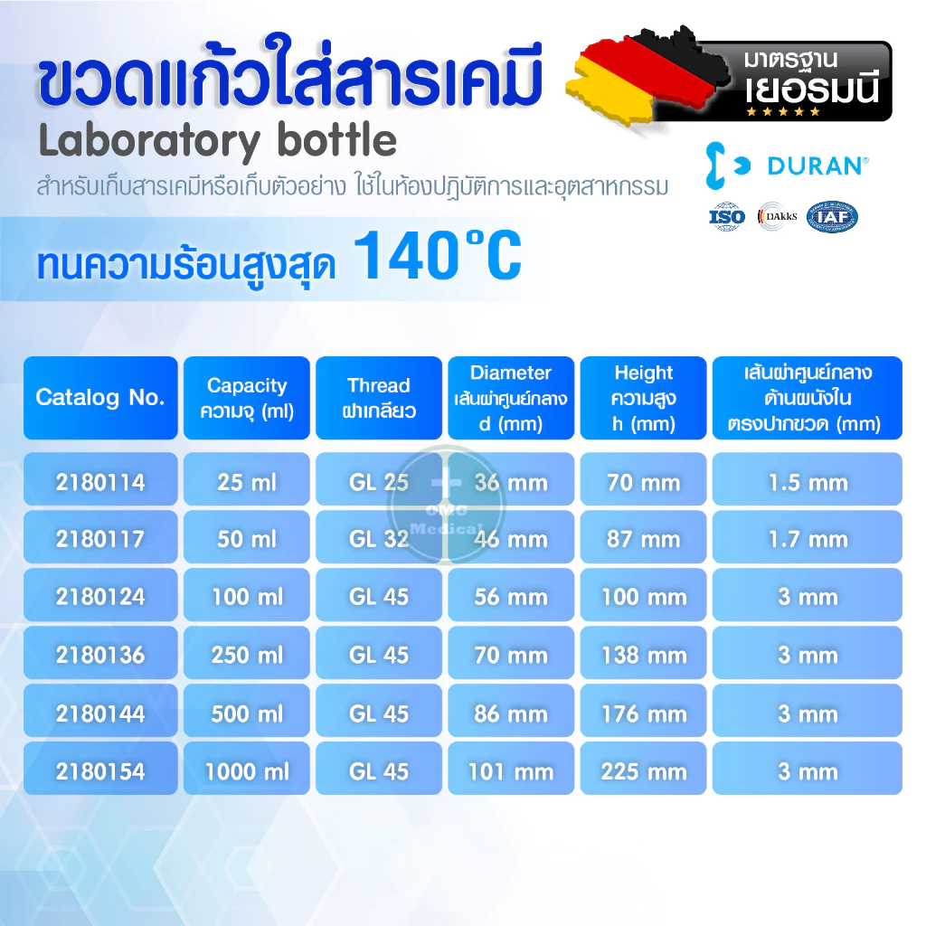 ขวด DURAN Laboratory bottle ขวดเลี้ยงเชื้อในห้องทดลอง/ขวดน้ำดื่ม