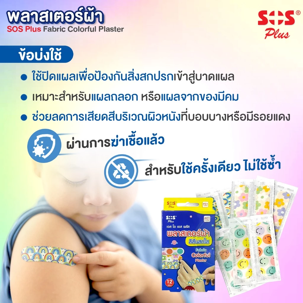 #SOS #SOSplus #พลาสเตอร์ผ้า #สีสันสดใส #พลาสเตอร์ปิดแผล #พลาสเตอร์ยา #FabricColorfulPlaster #Plaster #เอสโอเอสพลัส #omgmedical #อุปกรณ์ทางการแพทย์ #อุปกรณ์ปฐมพยาบาล