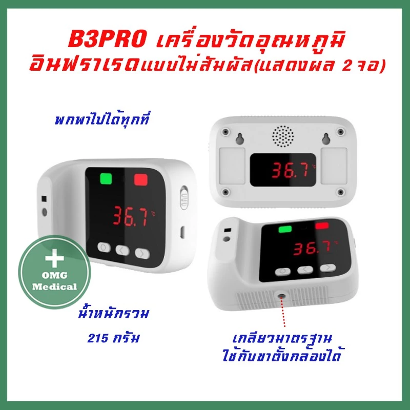 เครื่องวัดอุณหภูมิหน้าผากแบบติดผนัง และวางขาตั้ง ไม่ต้องสัมผัส ปลอดภัย ไร้ความเสี่ยง