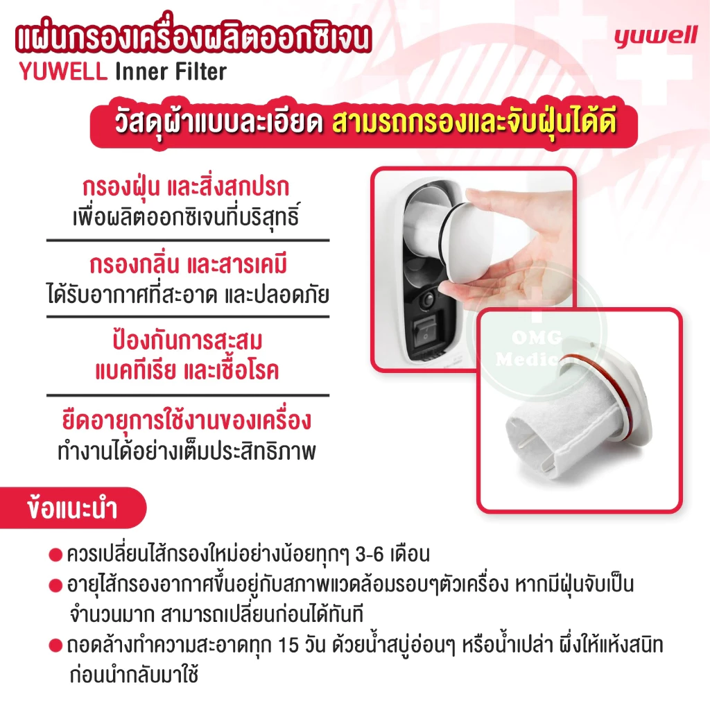 #ไส้กรองเครื่องผลิตออกซิเจน #แผ่นกรองเครื่องผลิตออกซิเจน #เครื่องผลิตออกซิเจน #Yuwell #InnerFilter #omgmedical #อุปกรณ์ทางการแพทย์