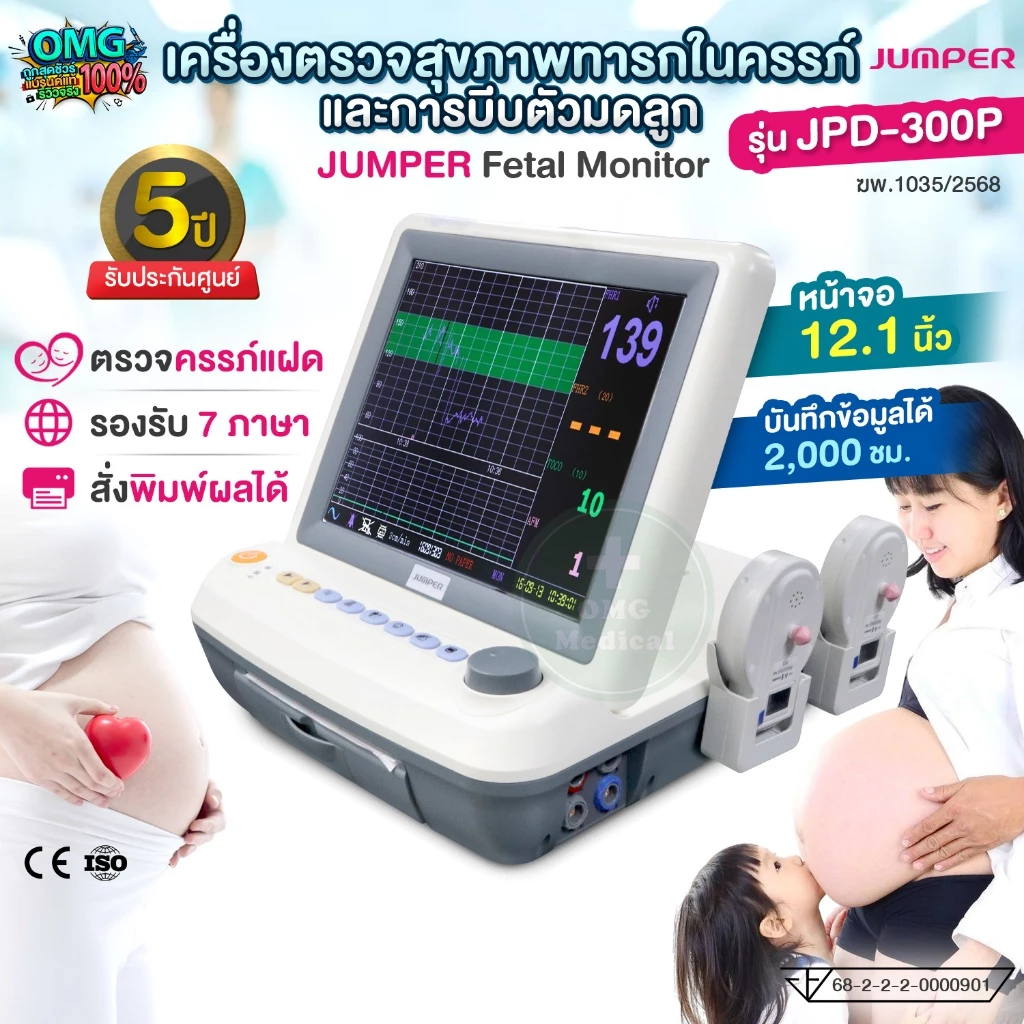 เครื่องตรวจสุขภาพทารกในครรภ์และการบีบตัวของมดลูก JUMPER Fetal Monitor JPD-300P7