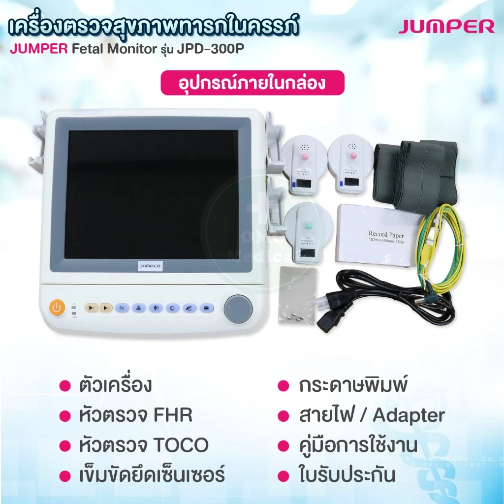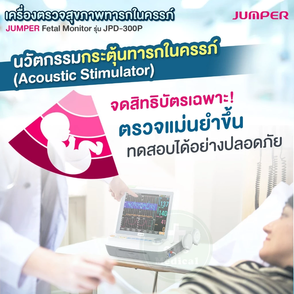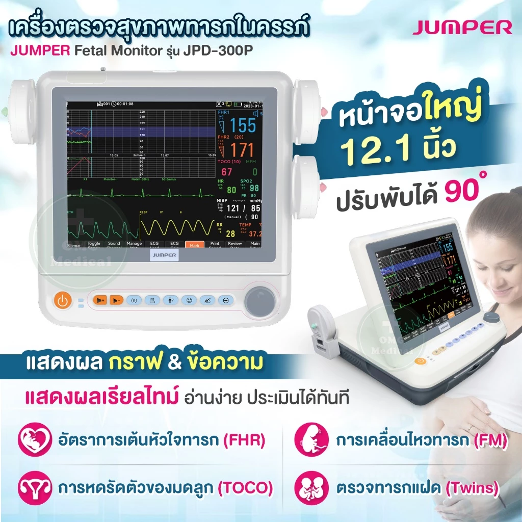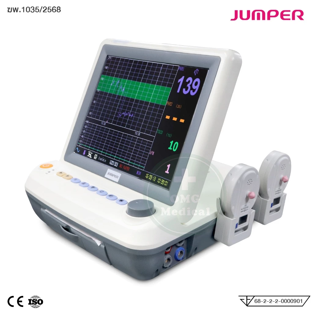 JUMPER Fetal Monitor อุปกรณ์ประเมินสุขภาพทารกในครรภ์แบบแม่นยำ พร้อมหน้าจอขนาดใหญ่ และระบบบันทึกข้อมูลครบครัน เหมาะสำหรับการตรวจสุขภาพทารกในครรภ์ก่อนคลอด (Antepartum) ใช้ได้ในสถานพยาบาล คลินิก และศูนย์แม่และเด็ก