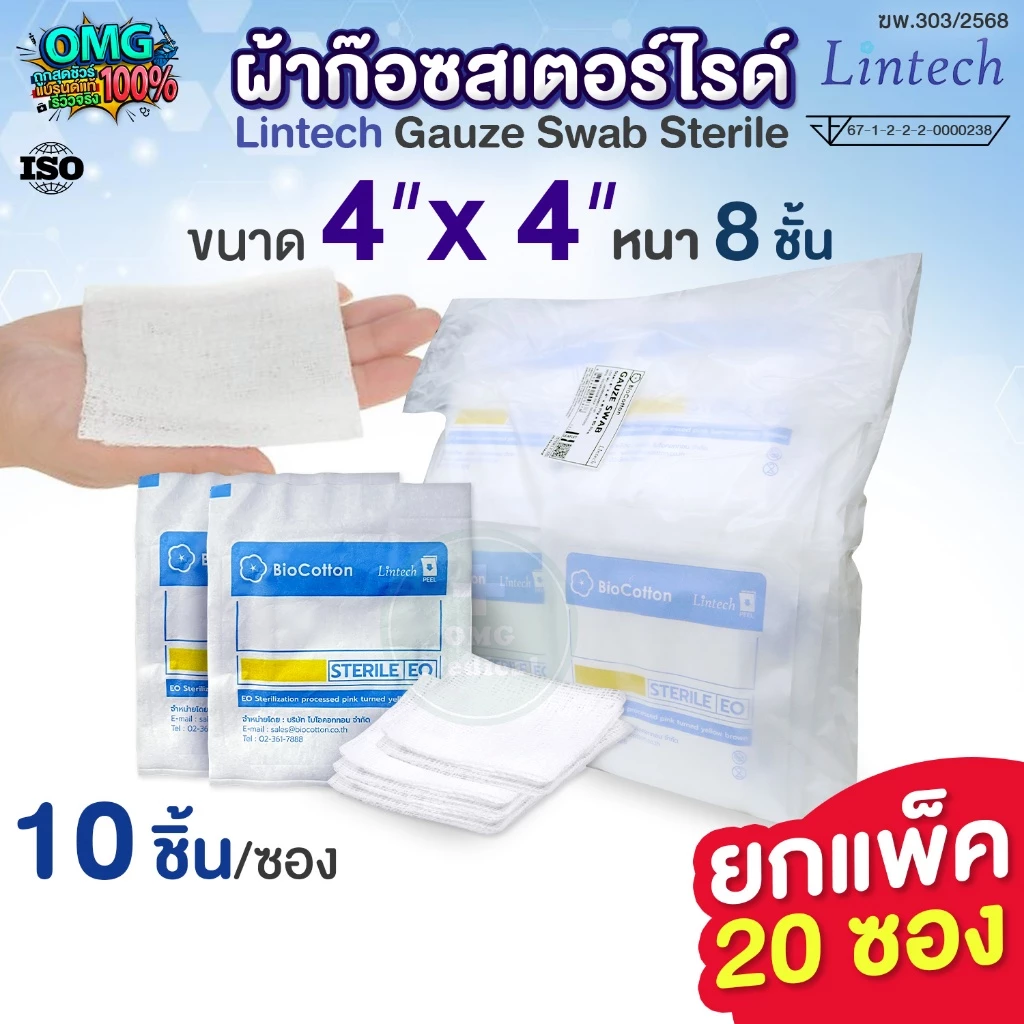 Lintech ผ้าก๊อซ สเตอร์ไรด์ ขนาด 4″x4″ x 8Ply BioCotton Sterile Gauze Pad