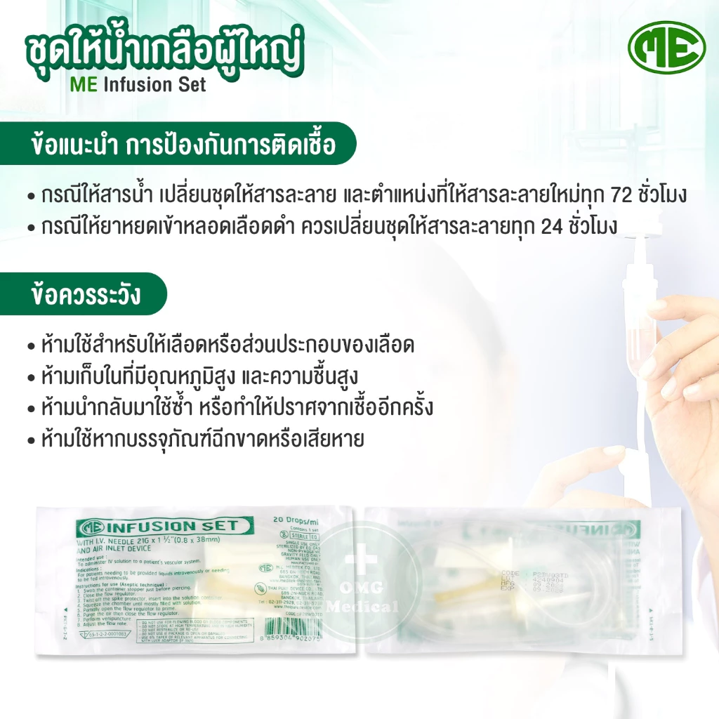 ชุดสายให้น้ำเกลือ ME Infusion Set 20 Drops/cc (แบ่งขาย 1 ชุด)