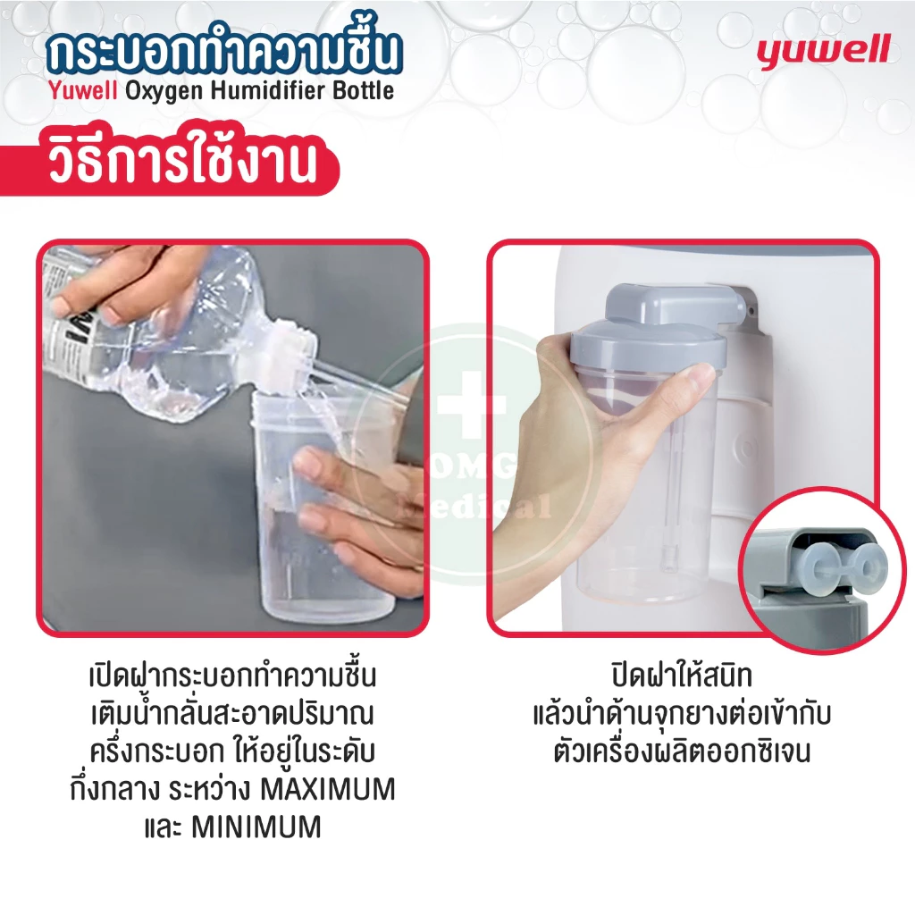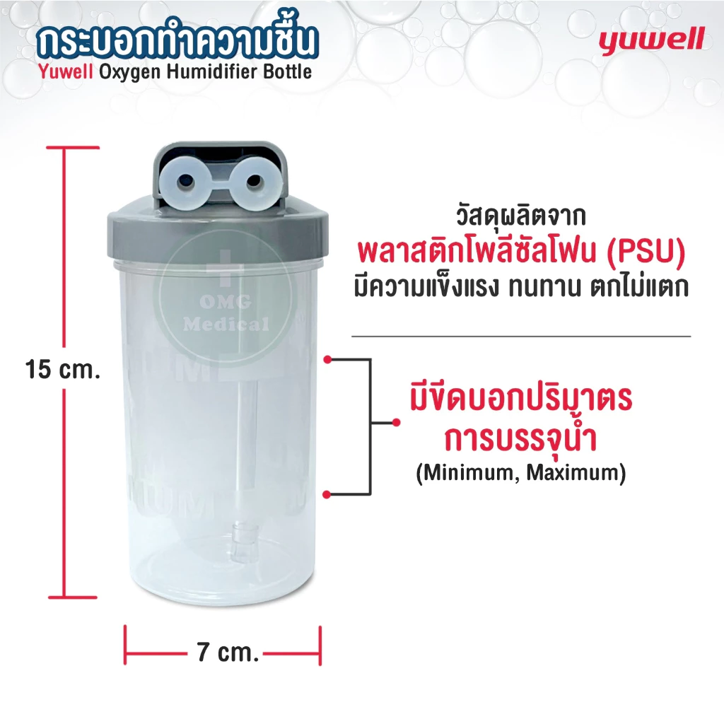 ▪ กระบอกน้ำกลั่น ใช้ร่วมกับเครื่องผลิตออกซิเจน Yuwell รุ่น 8F-10W เท่านั้น