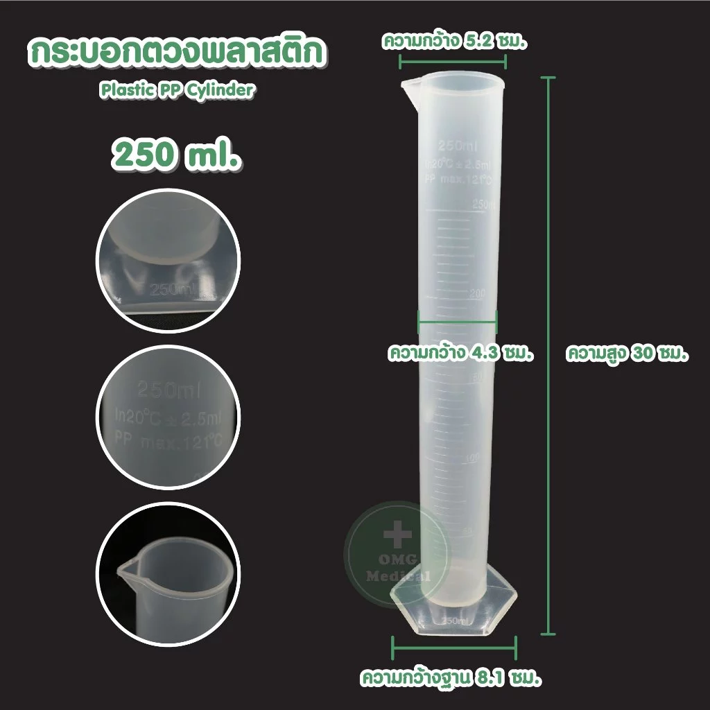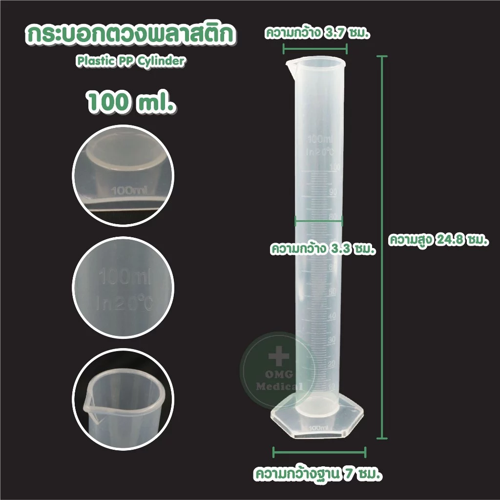 กระบอกตวงพลาสติก สําหรับห้องทดลอง Plastic PP Cylinder มีสเกลบอกปริมาณแบบนูน กระบอกห้องปฏิบัติการ คุณภาพสูง