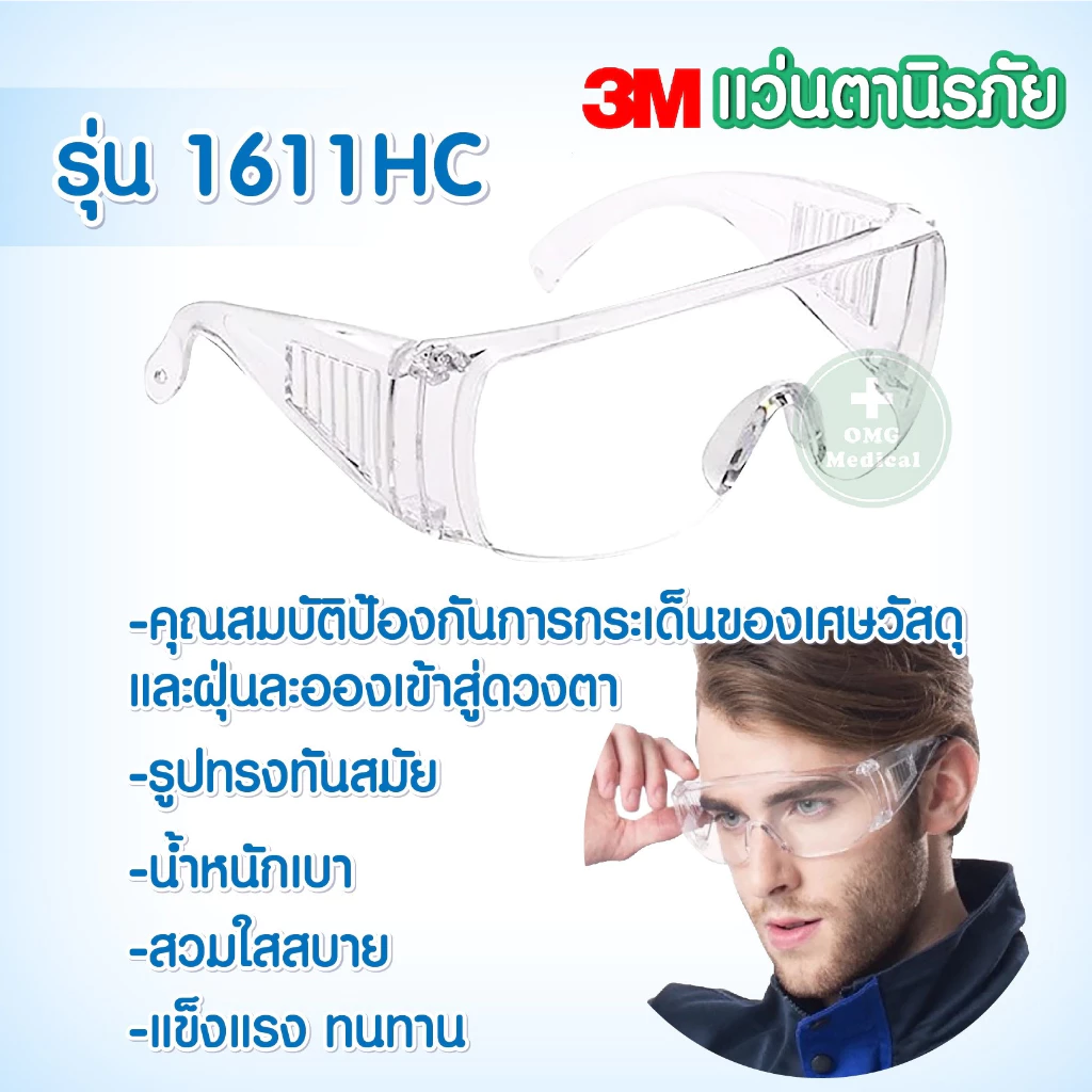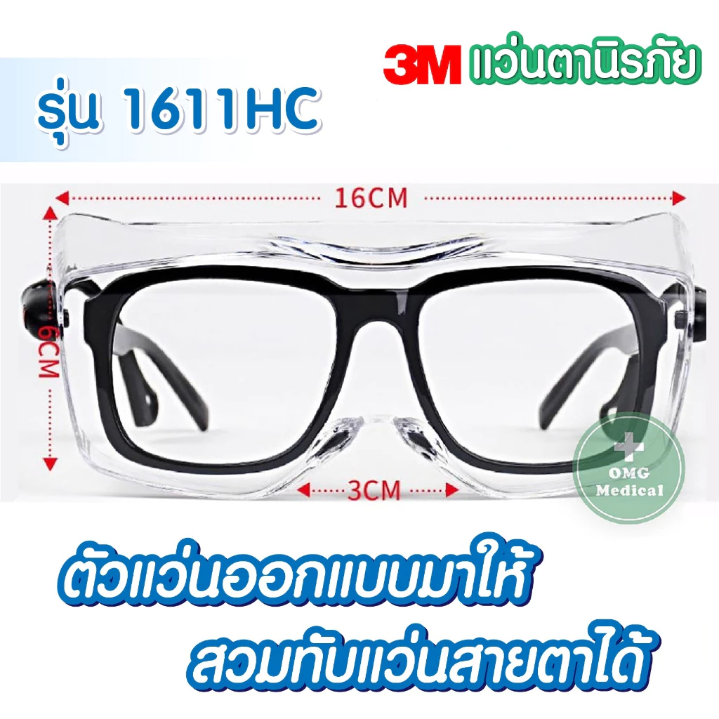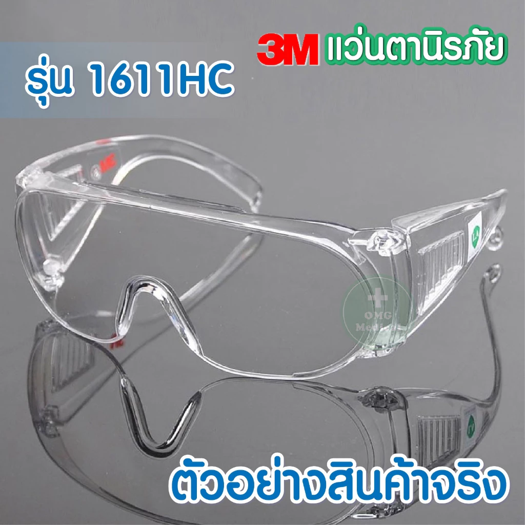 😎แว่นตา3M รุ่น 1611HC ของแท้ แว่นตานิรภัยปกป้องฝุ่นละอองเชื้อโรค/สะเก็ดน้ำลายรุ่น 1621สามารถสวมทับแว่นตาได้🤓