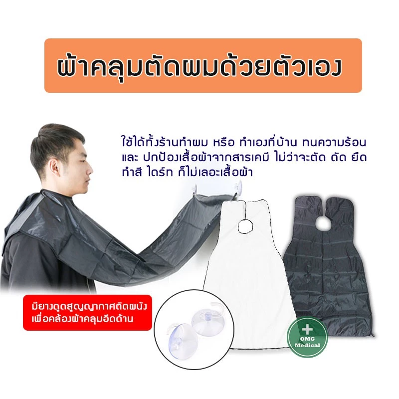 #ผ้าคลุมตัดผมด้วยตัวเอง #ผ้าใช้สำหรับรองตัดผม #ผ้ากันเศษผมร่วง #ผ้าคลุมตัดผมกันน้ำ #ผ้าคลุมตัดผมมีจุกยาง #omgmedical #อุปกรณ์ทางการแพทย์
