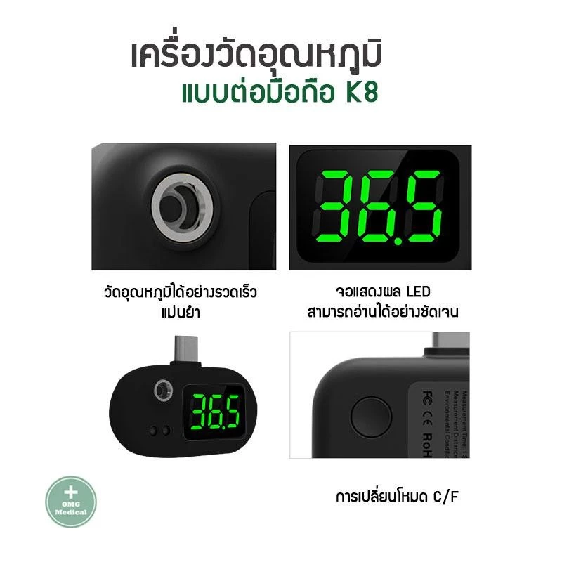 อุณหภูมิสามารถวัดได้ในเวลาสั้นๆโดยไม่ต้องสัมผัส ความปลอดภัย