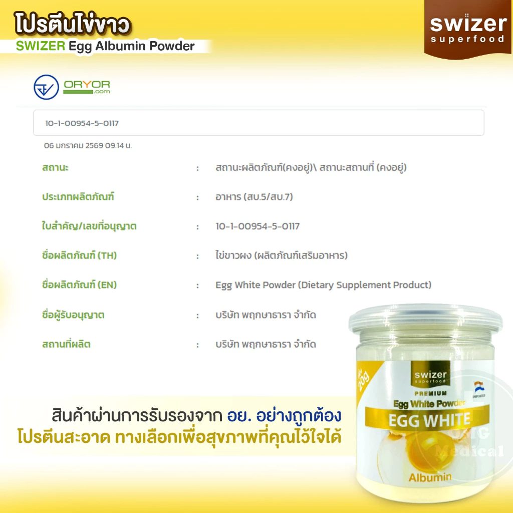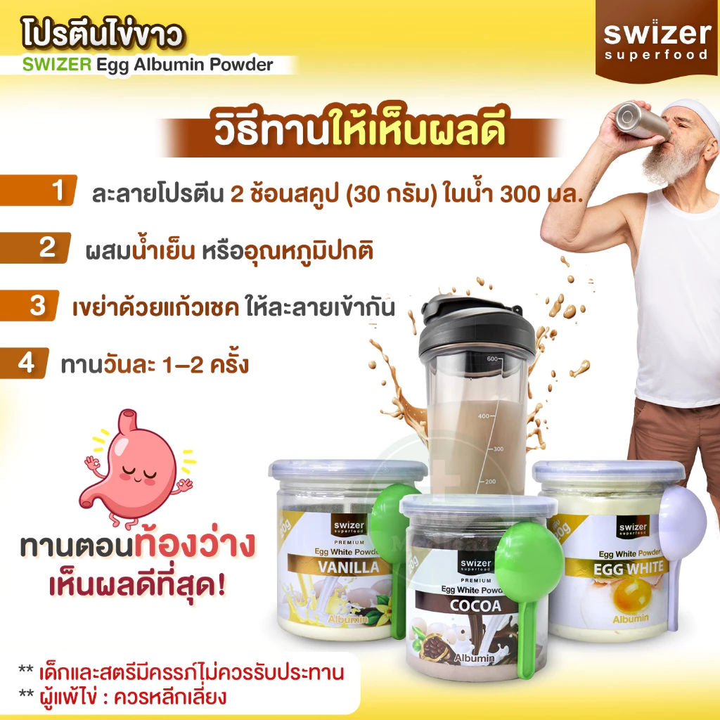 💪🏻 Swizer โปรตีนไข่ขาว ชงดื่ม (Egg Albumin Powder) ขนาด 120 กรัม | ฟรี! ช้อนสคูป 1 คัน