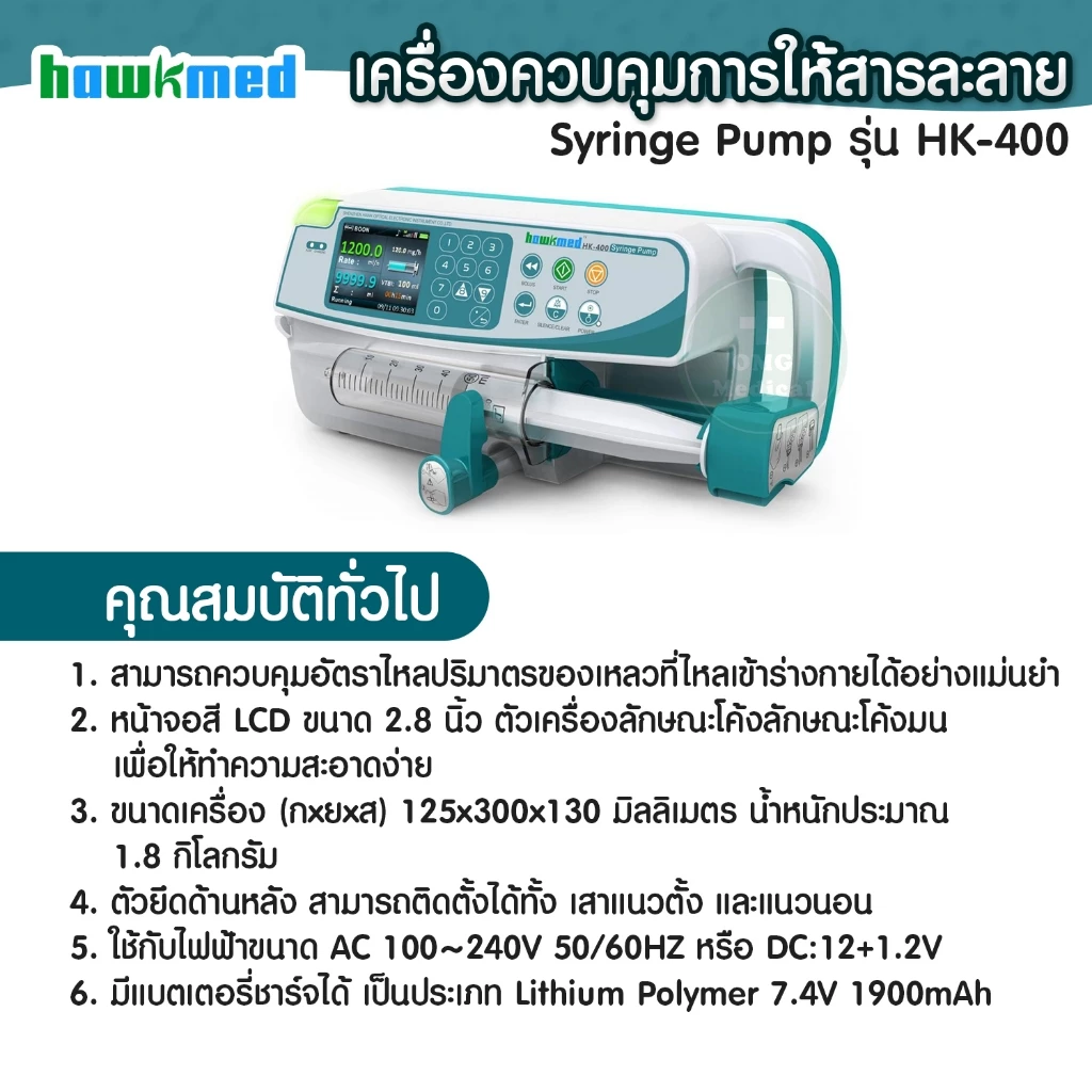 Hawkmed เครื่องควบคุมการให้สารละลาย ด้วยกระบอกฉีดยา (Syringe Pump) รุ่น HK-400