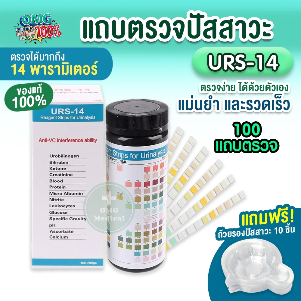 ❣️แถบตรวจปัสสาวะ Urine Test Strip URS-14 100 ชิ้น/ชุด แผ่นเดียว ตรวจได้มากถึง 14 พารามิเตอร์ แม่นยำ ใช้งานง่าย ได้มาตรฐาน!❣️