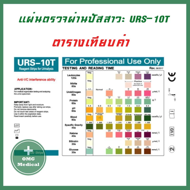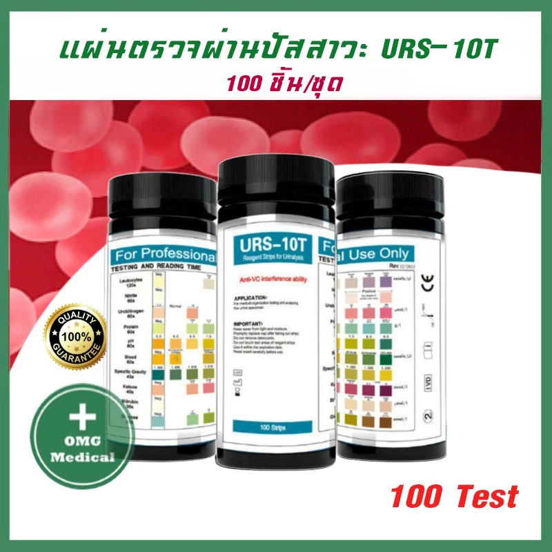 URS-10T 100 ชุดทดสอบ แถบ ตรวจผ่านปัสสาวะ พร้อมพารามิเตอร์แถบทดสอบปัสสาวะเม็ดเลือดขาวไนไตรท์ Urobilinogen โปรตีน PH