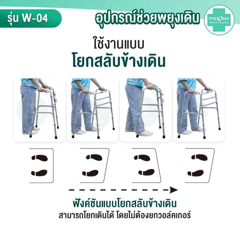 – สามารถโยกเดิน เพื่ออำนวยความสะดวกให้การฝึกเดินให้ง่ายมากขึ้น