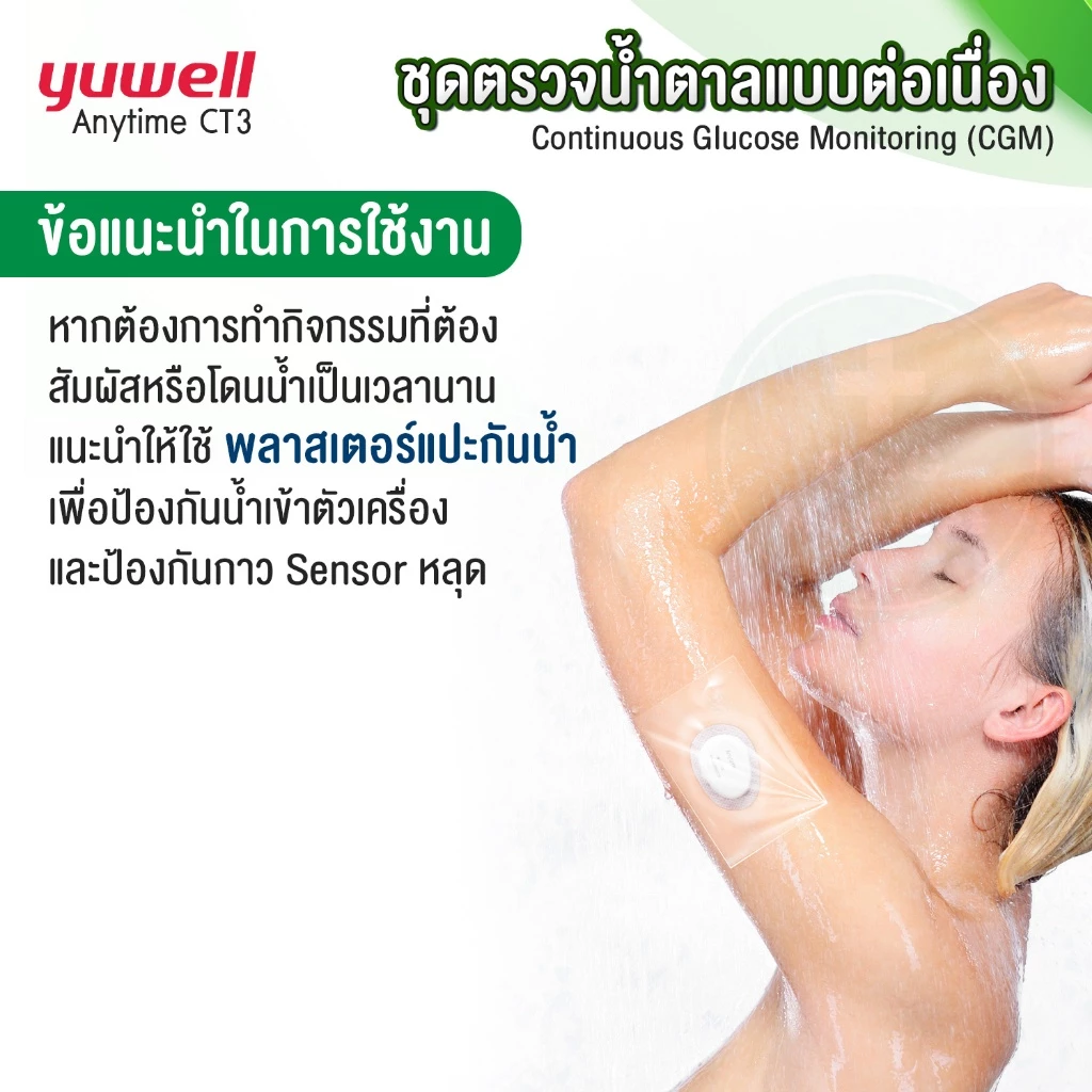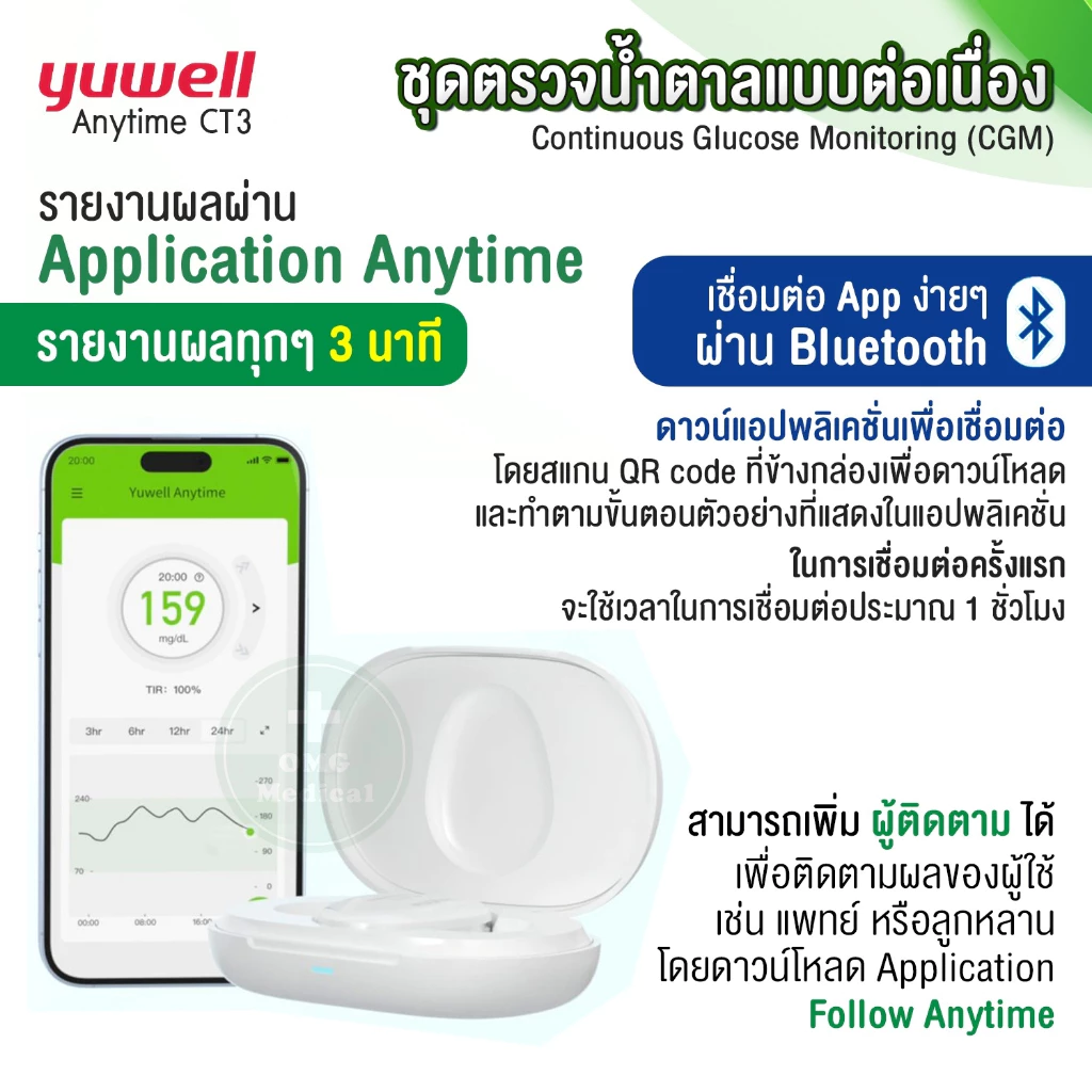 ✨ ชนิดแบตเตอรี่รีชาร์ตได้ ใช้ได้ 14 วัน เทียบเท่าการเจาะเลือด 6,720 ครั้ง แบรนด์ YUWELL รุ่น Anytime CT3 ✨